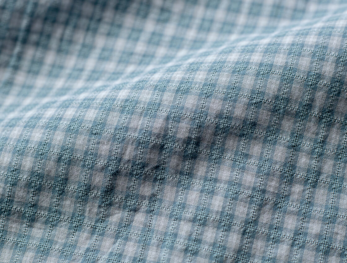 立体感と通気性を備えたコットン100%のドビーチェック生地を採用。