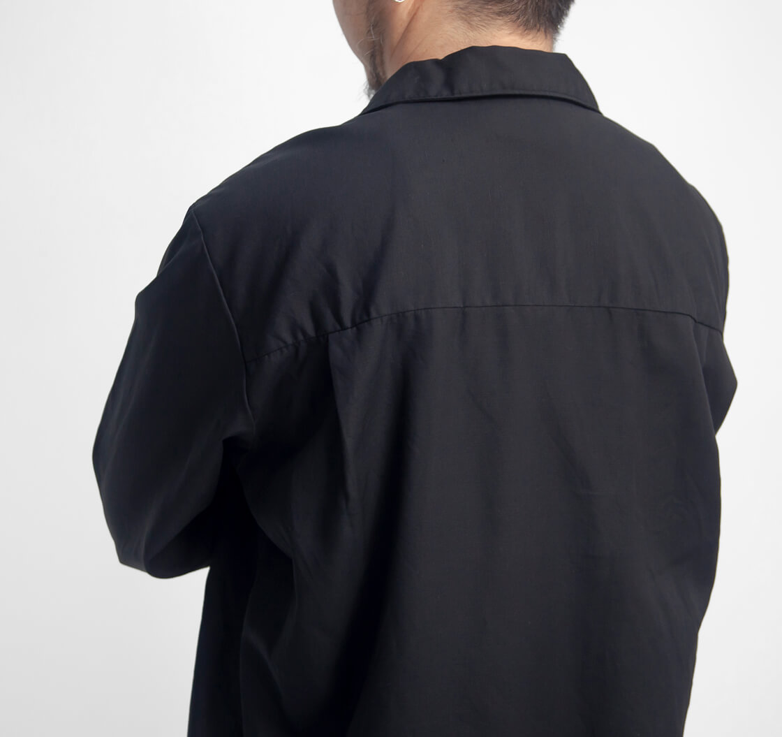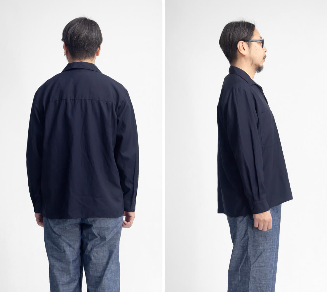 やや小振りな衿のスキッパーデザインに、両胸ポケットを配置。