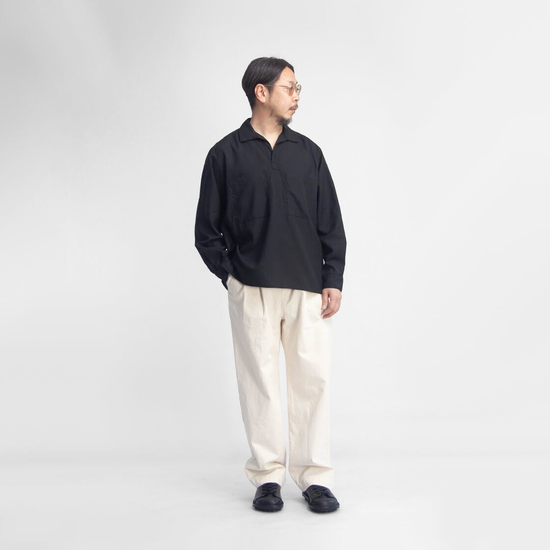 | 製品名 | MANUAL ALPHABET マニュアルアルファベット テンセル スラブポプリン スキッパー プルオーバーシャツ 日本製 メンズ |