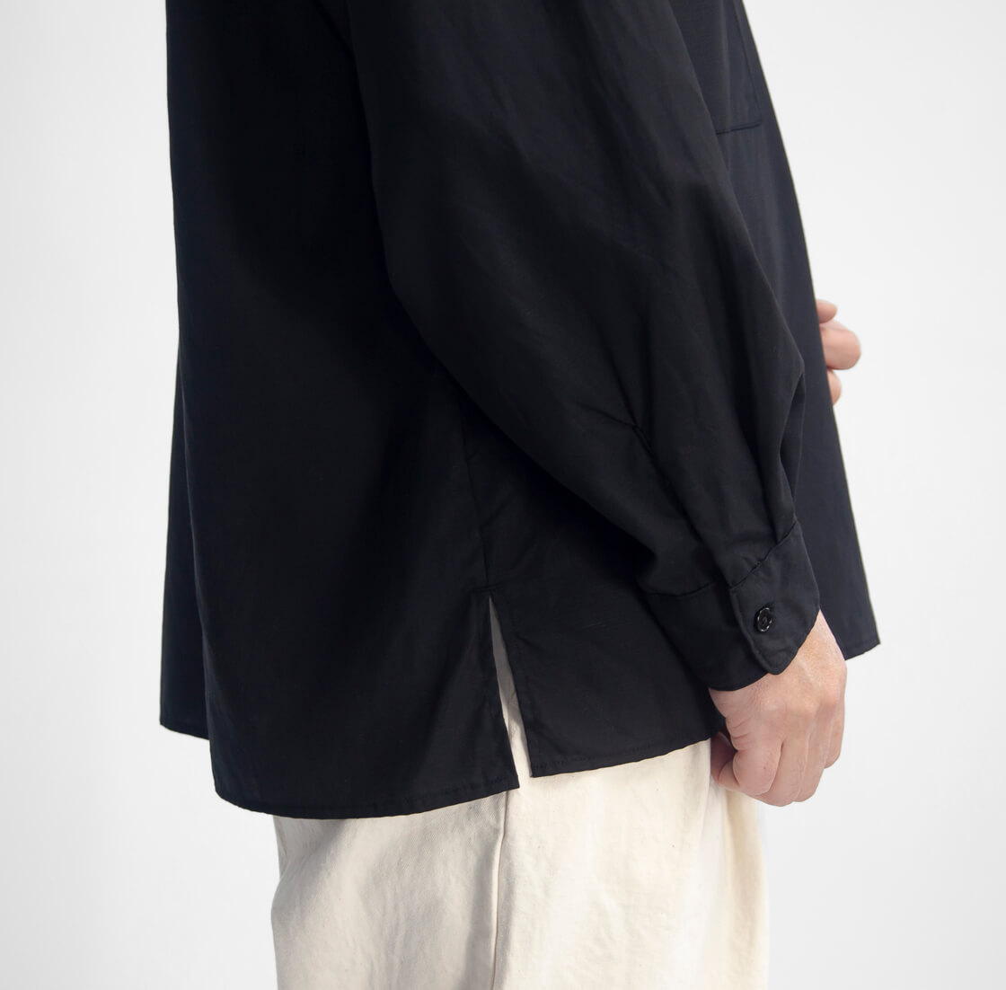 スクエアカットの裾と短めの着丈が特徴で、両裾にはスリット入り。