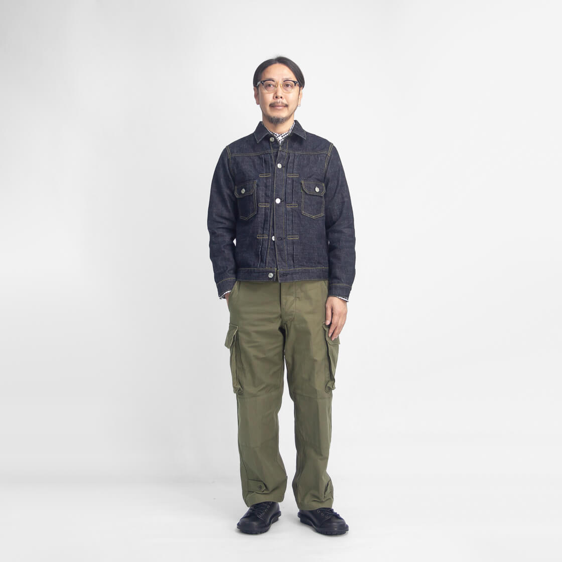 裾までストンと落ちる中太のストレートで、無骨さの中に品の良さを感じるバランスの取れたライン。