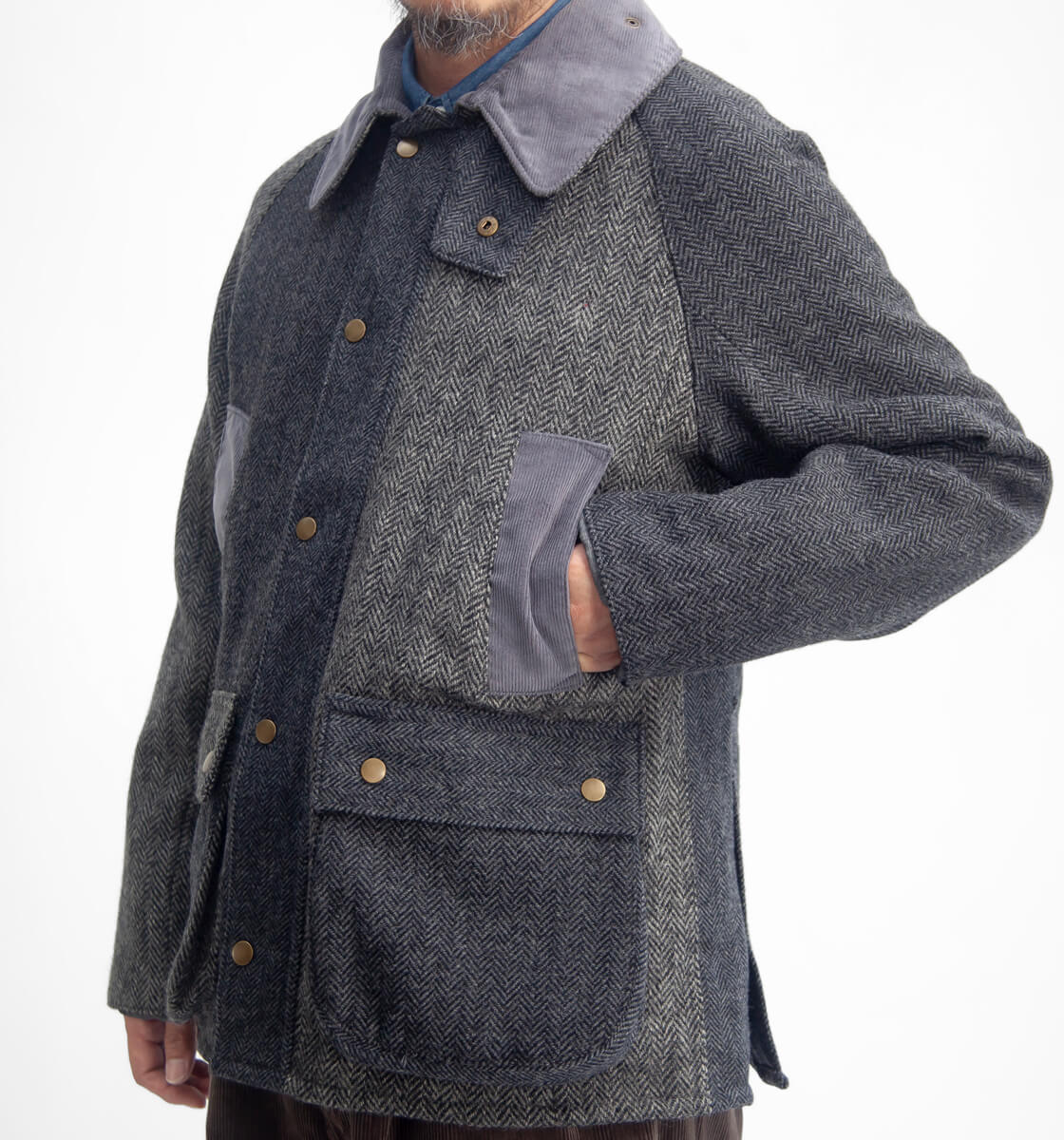 YOUSEDより、Harris Tweedを解体し再構築したカントリージャケットのご紹介。 ユーズドのハリスツイードでパッチワークを駆使し、名作ジャケットを表現した一着。 クラシックで温かみのある雰囲気と、全て一点モノという特別感が魅力です。 ラグラン、胸のハンドウォームポケット、フラップポケット、袖口のリブなど、ハンティングジャケットらしい仕様。 コーデュロイ襟にはチンストラップが付き、裏地により着やすさも実現。 スコットランドで伝統的に織られたハリスツイードのユーズド生地を使用。 クレイジーパターンでも上質な素材のおかげで、素朴さと落ち着いた温かみを感じさせます。 ブリティッシュな雰囲気を存分に楽しめる特別な一着です。 ぜひご検討ください。