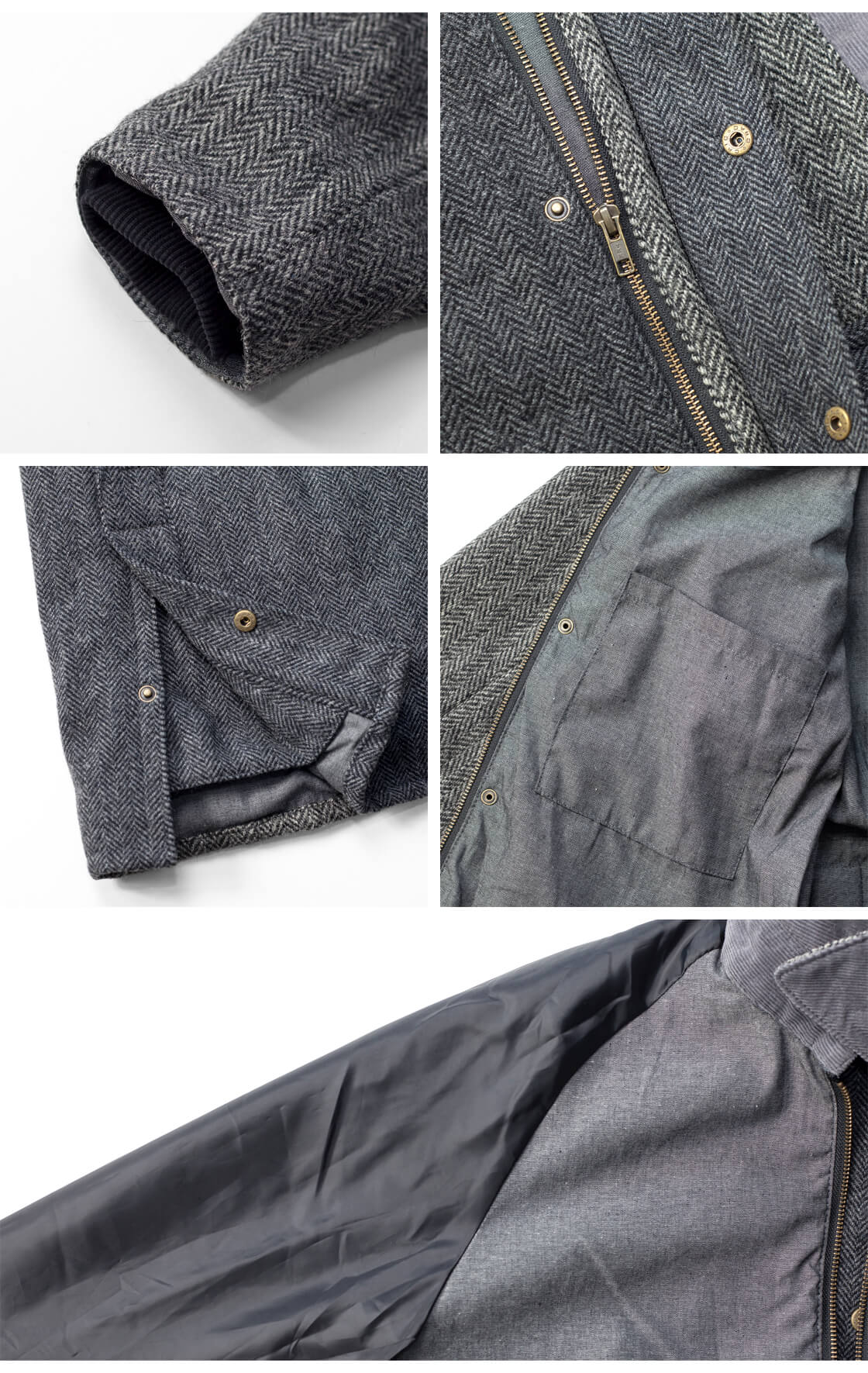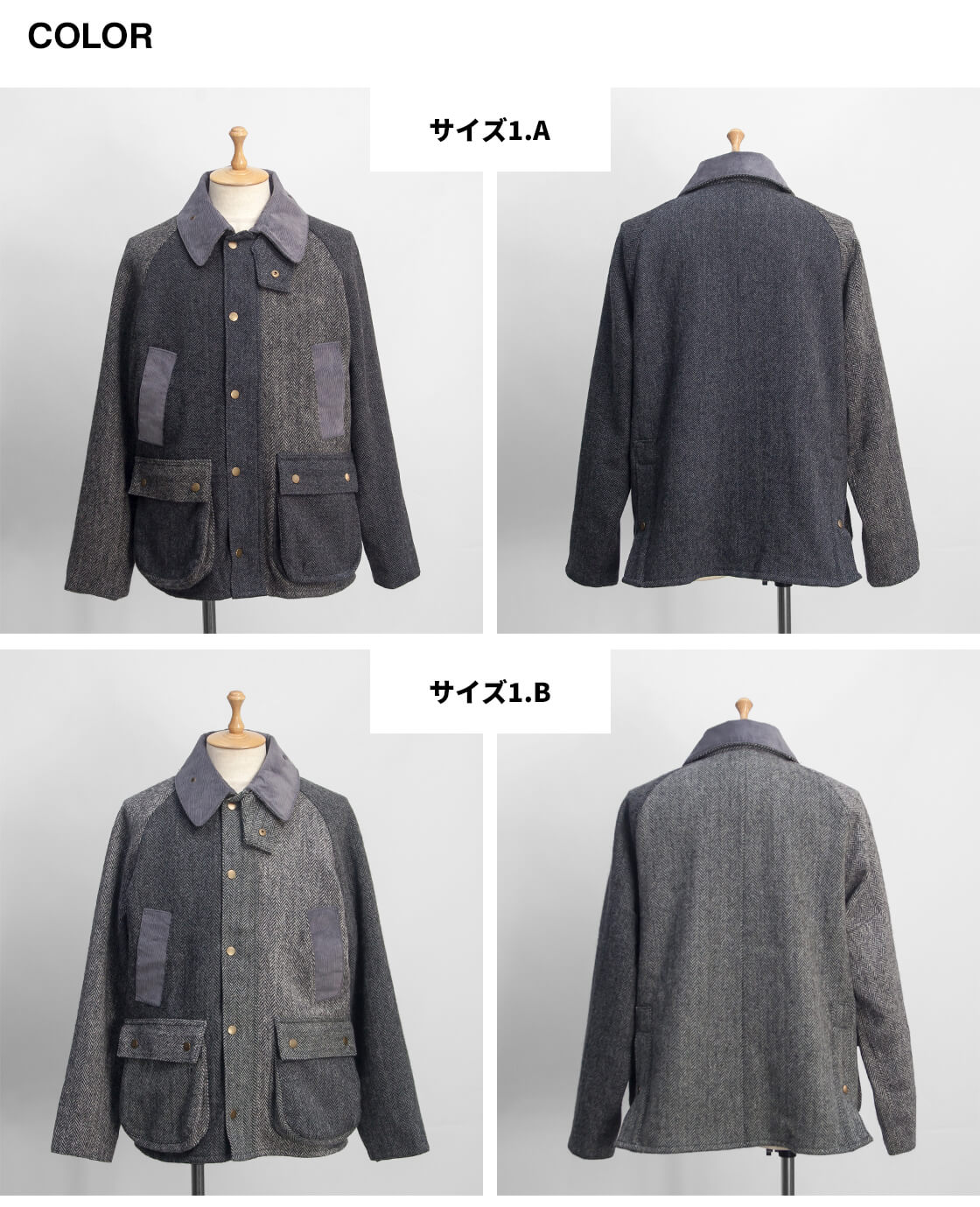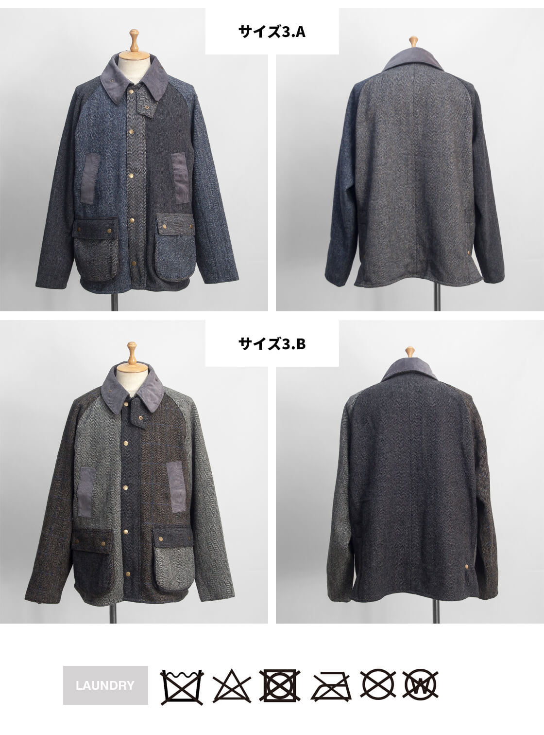 ![]() YOUSED - HARRIS COUNTRY JKT ![]() Harris Tweedのユーズドを解体し再構築した雰囲気抜群のカントリージャケット。 あの名作『BED〇LE』をベースに、Harris Tweedのユーズドを解体し、同系色のクレイジーパターンで再構築されたカントリージャケット。クラシックで温かみのある風合いに、全てが一点モノという特別感も魅力の一着です。 ![]() YOUSED(ユーズド) 厳選された世界中のビンテージウェアを解体し 「あなただけの」服をお届けします。 「エイジング」と「今」を融合させて生み出されるハーモニーは、 古着が持つ唯一無二の力強さ、 そして 洗練された遊び心で着る人を楽しく包み込みます。 長い年月を経ても新鮮で色あせない素材を「今」のパターンニングに落とし込み、 YOUSEDはあなたの日常に 新たな「いろどり」をもたらします。 ![]() あの名作をベースに、再構築、リメイクされたカントリージャケット。 動きやすさを追求したラグランスリーブ、胸部のハンドウォームポケット、裾のサイドベンツ、腰位置の特徴的なフラップポケットなど、あのBED〇LEとほぼ同じ仕様に仕立てられています。首元のコーデュロイ襟はチンストラップ付きで風防効果も高い。身頃の裏地はシャンブレー生地、袖裏はポリエステルタフタで、袖通しも滑らか。袖口は内部にリブ付きで、冷気の吹き込みを防ぐ風防に。シルエットは身幅を広めにとったワイドシルエットで、インナーを選ばないのもありがたい。 ![]() 同系色のハリスツイード生地で仕立てられた雰囲気抜群の素材使い。 Harris Tweedはスコットランド発祥のツイード生地で、ヴァージンウールを使用して、島内で染色、紡績し、職人の自宅で手織りされた物を指します。そしてハリスツイード協会によって決められた厳しい基準をクリアしたもののみハリスツイードと認められている、イギリスでも歴史の長い生地になります。ハリスツイード社があって、そこが作っている生地というわけではありません。日本でいうとこの今治タオルの様な感じですね。そのハリスツイード生地を使用したユーズドの製品を細かく解体し、パッチワークしたクレイジーな素材使いは、素朴さとほっこりとした温かみを感じさせてくれます。 ![]() ![]() 身長170cm、体重62kgの男性が1サイズ着用。