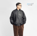 素材 USED FABRIC 表地(レザー) 裏地(綿 ポリエステル) 生産国:タイ モデル着用コメント(170cm 62kg) 1サイズを着用しました。身幅や肩幅、アームホールにしっかりとゆとりがあり、肩が落ちる今どきのシルエットで着こなせます。着心地も見た目に反して重さはなく、気楽に羽織れます。着丈はヒップにかかるぐらいの長さで、袖丈は丁度いい長さでした。よりザックリと合わせるなら2サイズでもいいかと思いますが、個人的に全体のバランスとしては1サイズが丁度いいかなと思います。 スタッフ着用コメント |