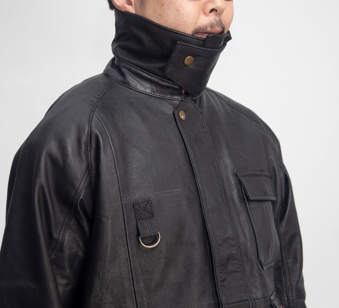 ヨーロッパのレザー古着を解体し再構築した、YOUSEDのフィッシングジャケットをご紹介。 某ヴィンテージモデルをモチーフにしつつ、状態の良いユーズドレザーのみを厳選使用。 パーツごとに異なる表情や切り替えが、そのまま個性となっています。 胸元のD管リング、マチ付きポケット、背面のゲームポケットなどフィッシングディテールを搭載。 コーデュロイ襟やチンストラップ、袖内側のリブにより防風性も確保。 裏地は身頃にシャンブレー、袖にタフタを配し、滑らかな着心地に。 柔らかく軽やかなイタリアンレザーは、すでに深みのある表情。 個体ごとに異なる風合いも魅力の、唯一無二の存在感を放つ一着です。