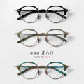 鯖江が誇る世界最高水準の眼鏡職人の技術が堪能出来る、クラウンパント型と組み合わせた希少なサーモントフレームをご紹介。 艶やかに磨かれたアセテートと、軽量かつ強度に優れたチタンを組み合わせたクラシカルな雰囲気漂うコンビネーションサーモントフレーム。フレンチスタイルのクラウンパント型とアメリカンなサーモントシェイプを組み合わせた、日本製ならではの希少なデザインとなっています。ブリッジやテンプルなどチタン部分には繊細な彫金模様が施され、職人の技術の高さも伺える一本。細身で軽量なうえ、クリングスタイプのノーズパッドで掛け心地も良好です。 <ご注意> ※度付き、伊達メガネは配送に3~7日程度頂きますことをご了承くださいませ。 ※当店取り扱いレンズの制作範囲を超える特注レンズの場合は、別途4000円追加料金を頂きますことをご了承ください。 ※レンズ加工したメガネ(度付き、伊達メガネ)に関しましては返品、交換を一切お受けできませんのでご了承ください。