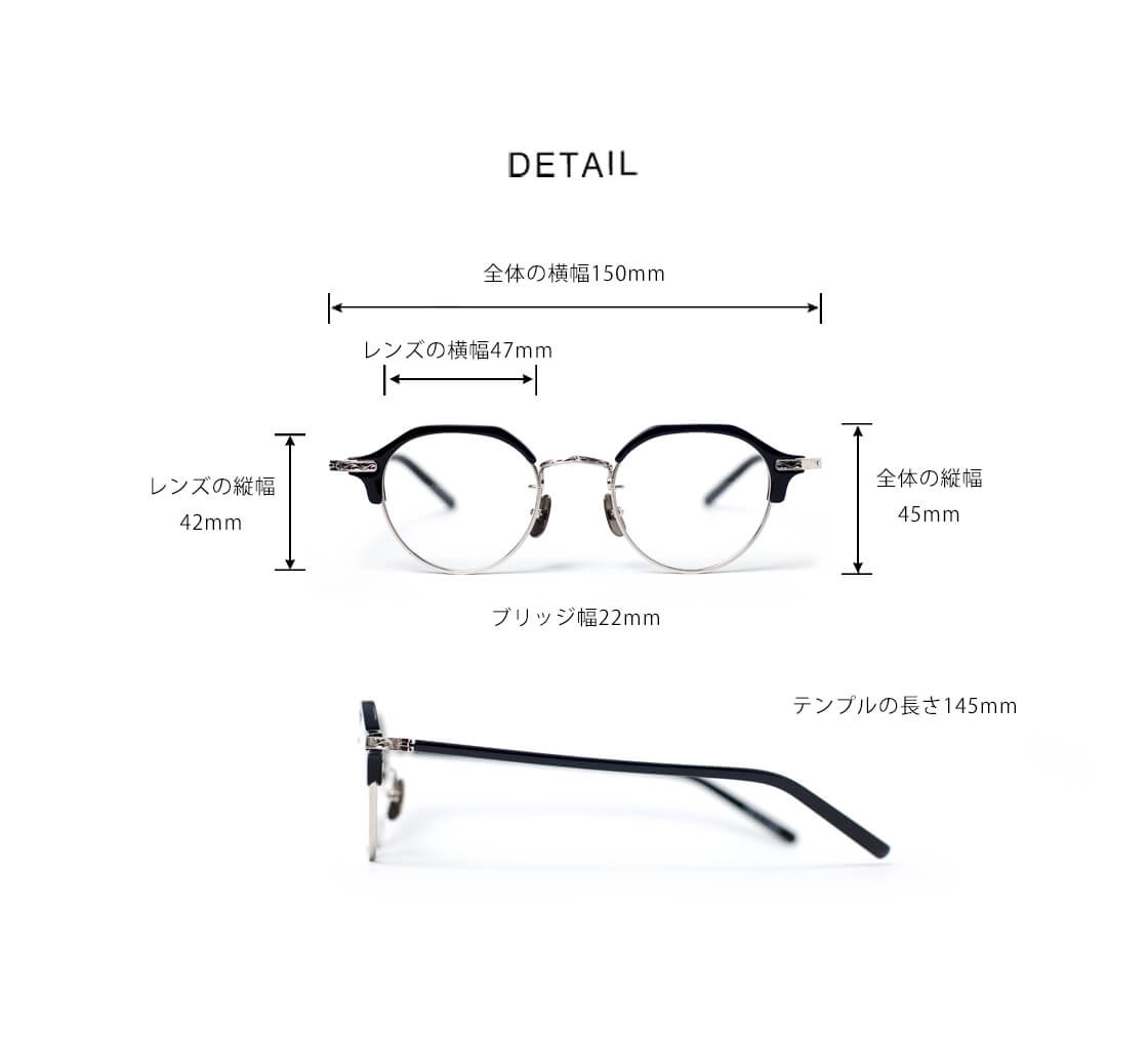 (FREE)/レンズ横幅47mm/レンズ縦幅42mm/全体の横幅 (フレーム込み)150mm/全体の縦幅(フレーム込み)45mm/ブリッジ幅22mm/テンプル長さ145mm