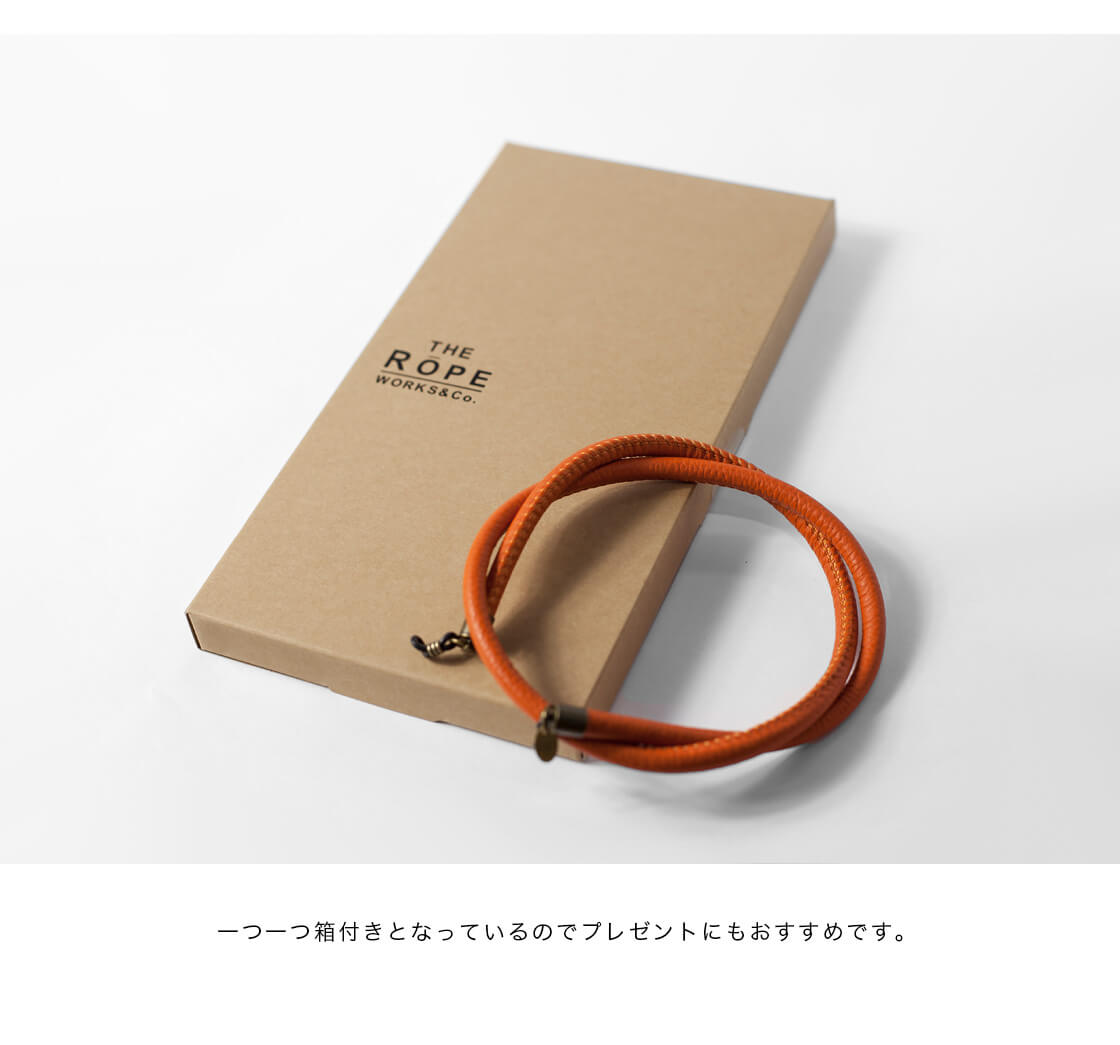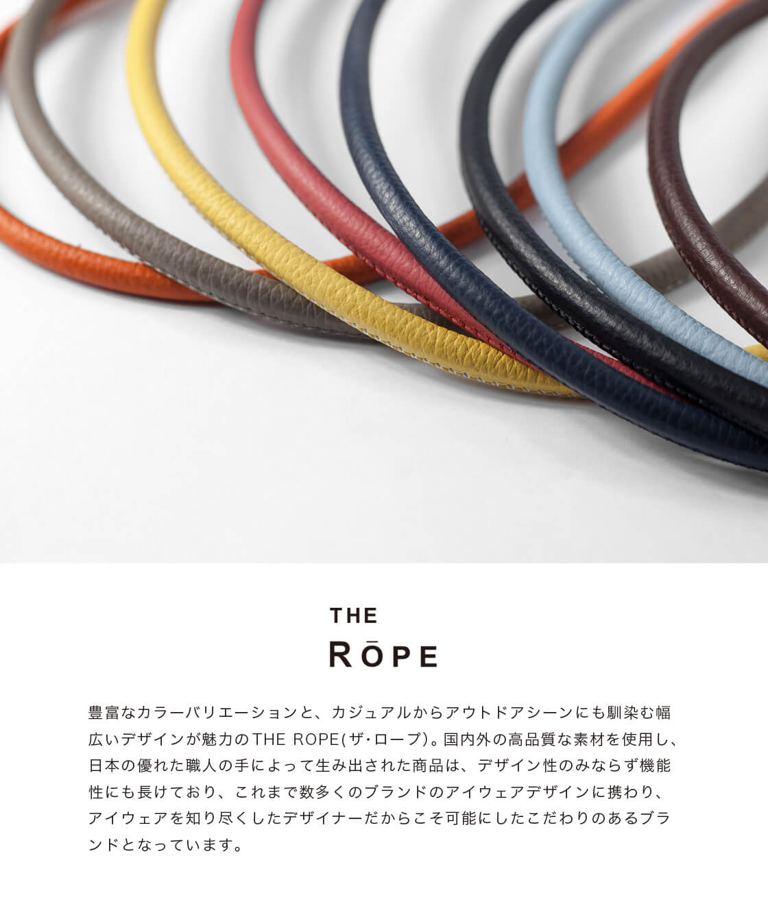 「THE ROPE(ザ・ロープ)」から、シュリンクレザーを使用した存在感のある肉厚な丸紐のグラスコードをご紹介。 国内外の高品質な素材を使用し、日本の優れた職人の手によって生み出された「THE ROPE(ザ・ロープ)」。 姫路産の上質な牛革(シュリンクレザー)を贅沢に使用した極太なコードが印象的なこちら。シュリンクレザーとは革の表面を収縮させた独特なシボ模様が特徴的な革となっており、ふっくらとしたやわらかい質感は使い始めから肌馴染みも良い。しっかりとしたコードで太めのフレームとも相性◎ さらに製造過程で抗菌・撥水加工も施されているため水や汗、汚れなどを防いでくれるので長くご愛用いただけます。 ブランドオリジナルカラーで仕立てた全8色展開。 専用の箱に一つ一つ梱包されておりプレゼントとしてもお勧めです。
