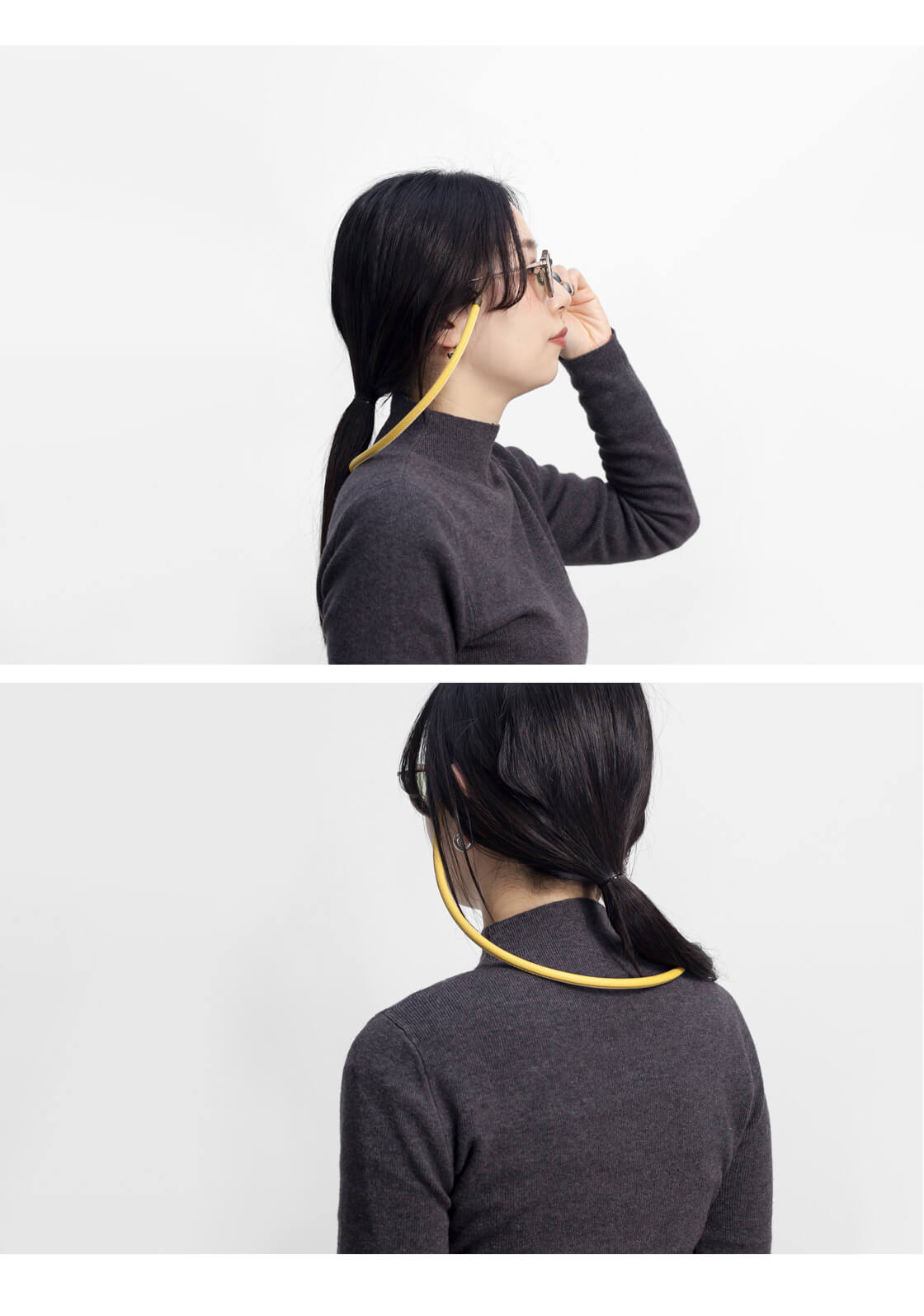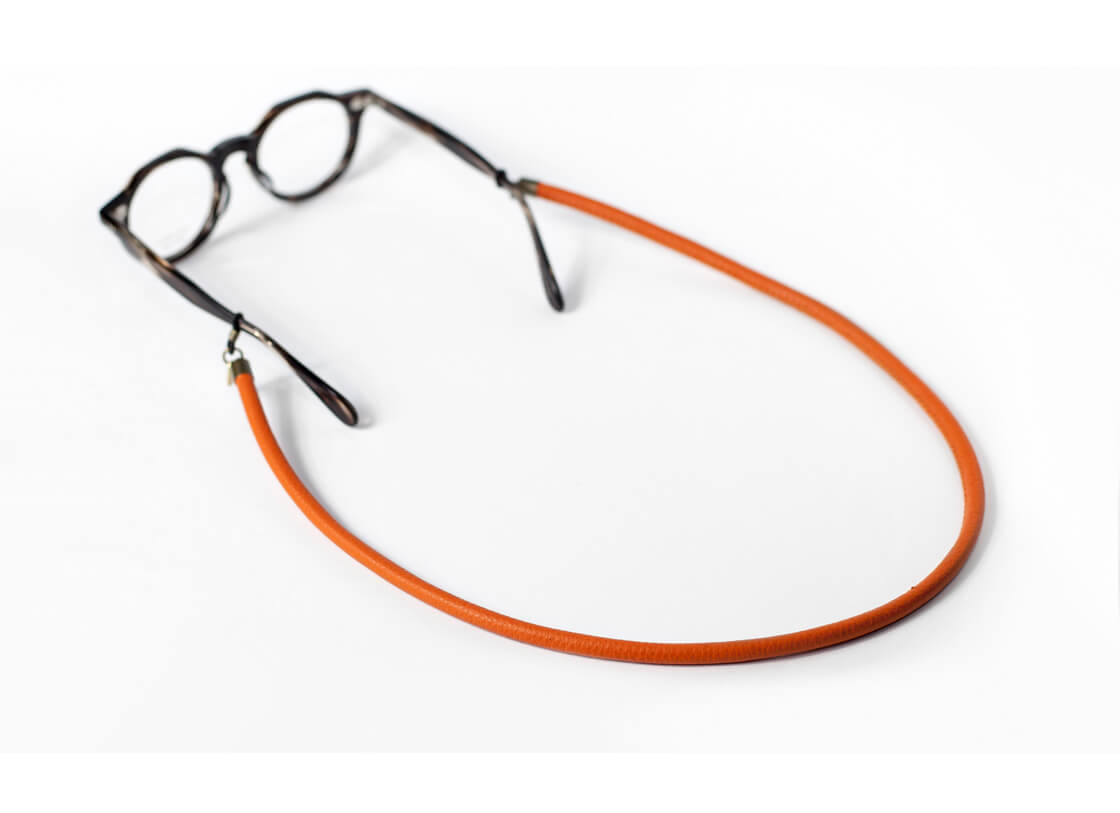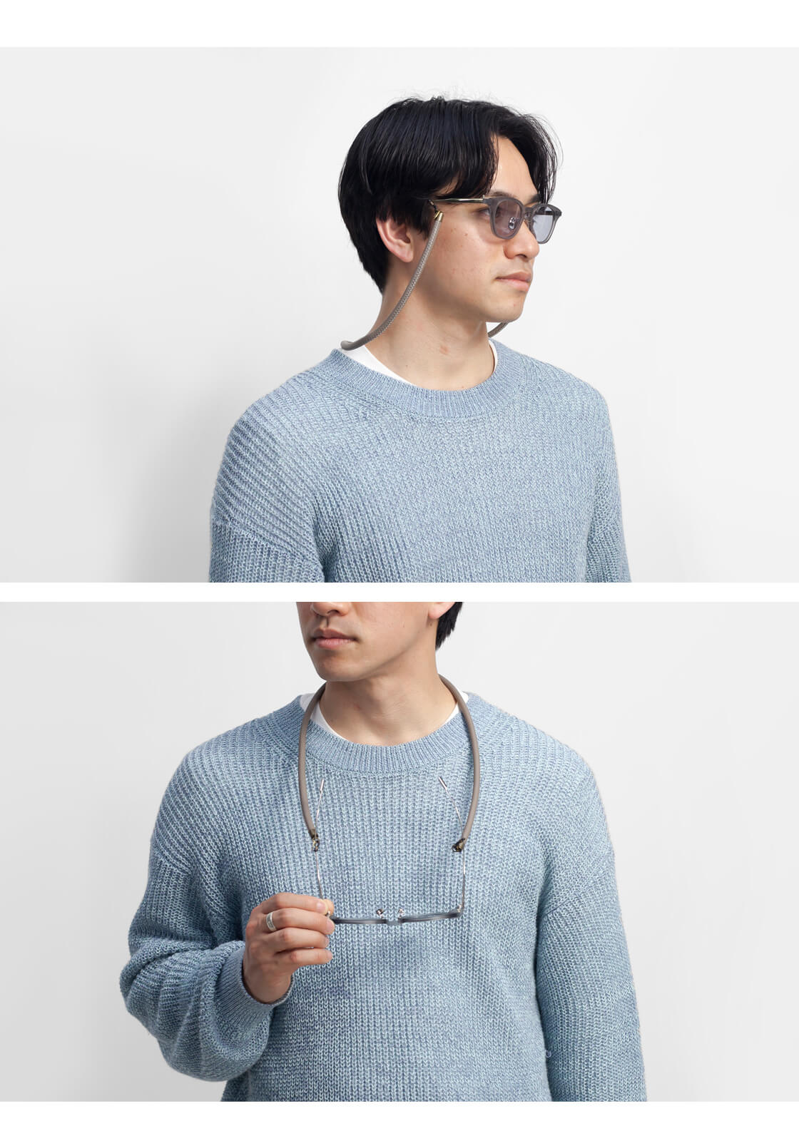 姫路産の上質な牛革(シュリンクレザー)を贅沢に使用した極太なコードが印象的なこちら。シュリンクレザーとは革の表面を収縮させた独特なシボ模様が特徴的な革となっており、ふっくらとしたやわらかい質感は使い始めから肌馴染みも良い。しっかりとしたコードで太めのフレームとも相性◎