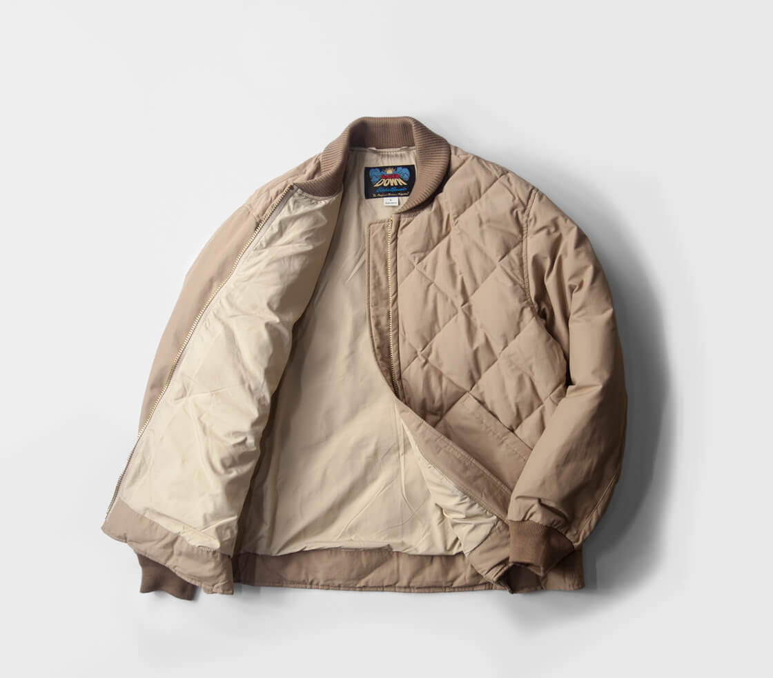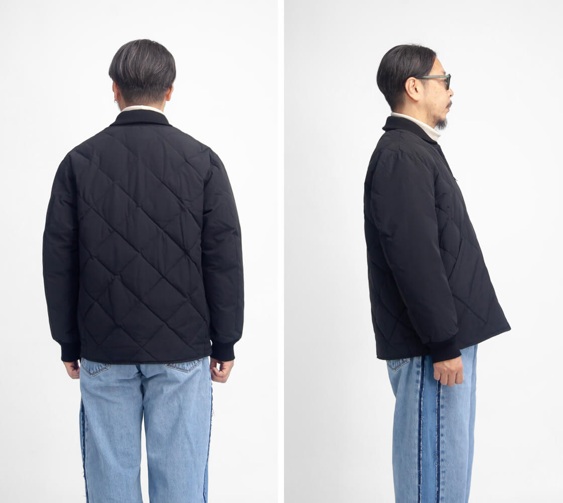 ダイヤモンドキルティングや無骨な真鍮ジッパー、段リブ袖など当時の面影を残すディテールを備え、レギュラーフィットで今の着こなしにも自然に馴染みます。