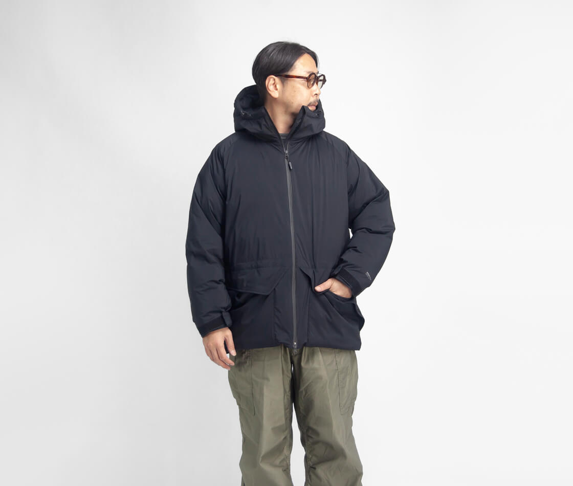 身頃とフードの一体化や止水ダブルファスナーで日常に取り入れやすく再構築しています。