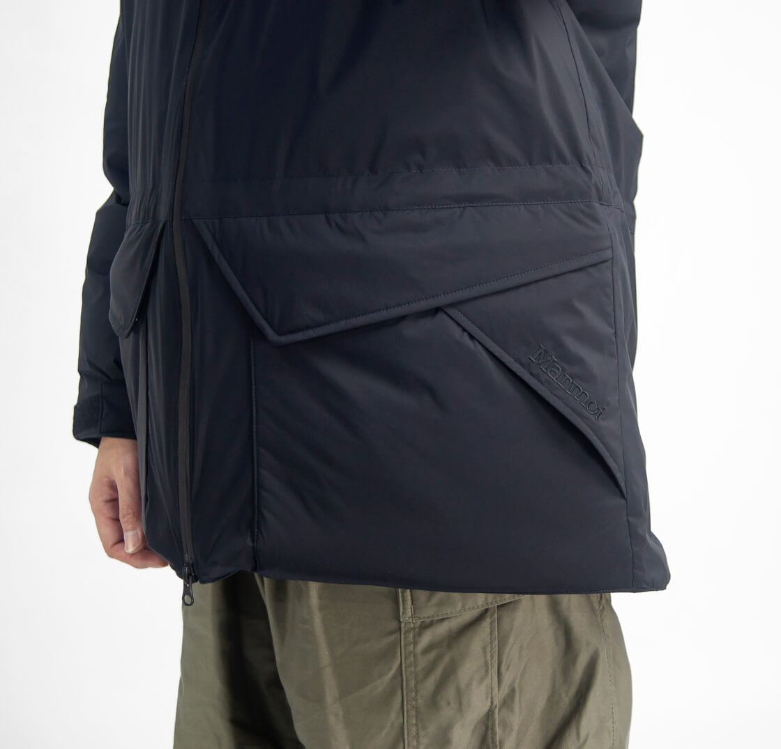 Marmotから伝説的モデルマンモスパーカを現代的に仕上げたダウンジャケットのご紹介。 オリジナルのボリューム感と収納力を継承する一方で、 身頃とフードの一体化や止水ダブルファスナーで日常に取り入れやすく再構築しています。 高めの襟元、7つのポケット、ドローコードなど、防風性と実用性を高めたディテールが並びます。 表地は防水・防風・透湿性を備えたPERTEX Shield Proの3層素材で、天候の変化にも強く快適。 中綿には750フィルパワーのダウンを封入し、包まれるような軽さと保温性を確保。 街使いには十分すぎるクオリティです。 ゆったり着られる現代的シルエットとコスパも魅力の一着です。