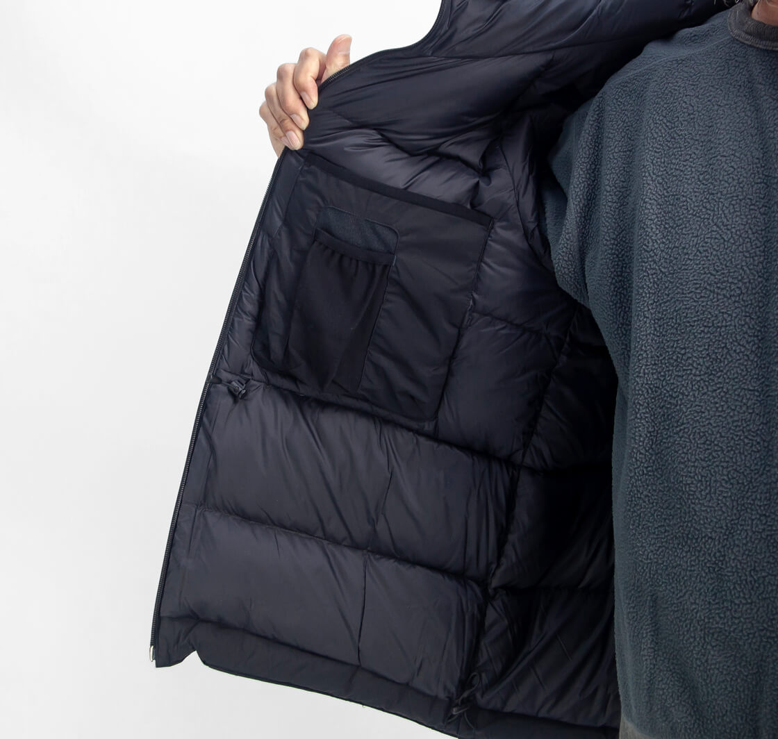 中綿には750フィルパワーのダウンを封入し、包まれるような軽さと保温性を確保。