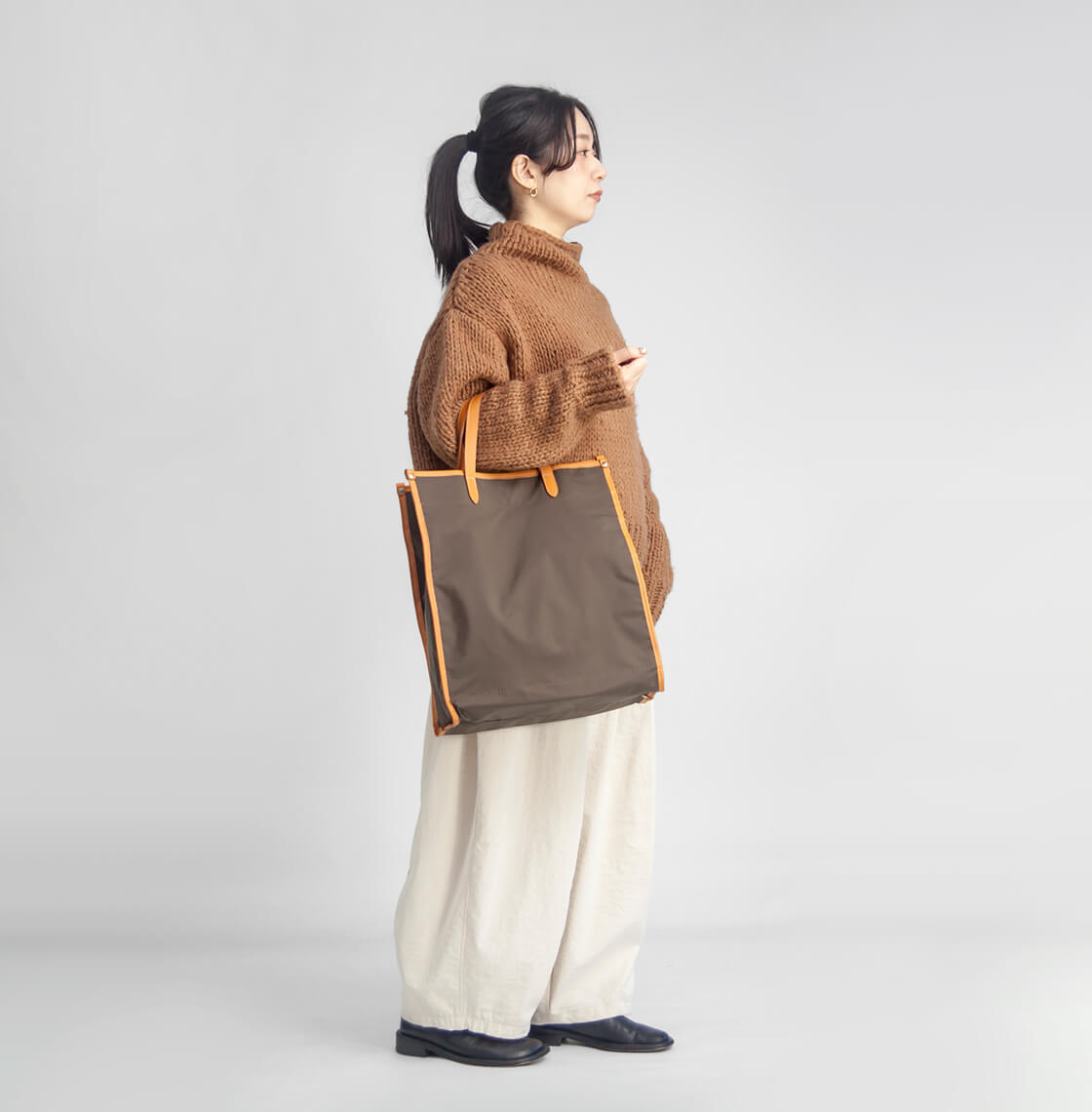 上品な佇まいと実用性を両立した、天候を選ばず使える大人のためのトートバッグです。