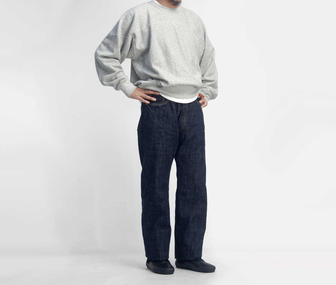 穿き込むほどに色落ちやアタリが現れ、デニムならではの経年変化を楽しめる一本です。