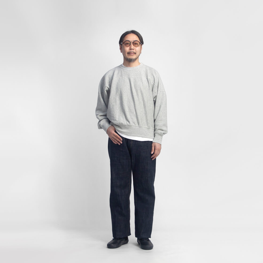 太さを持たせながらも股上を深くしすぎず、大人が穿きやすい一本です。