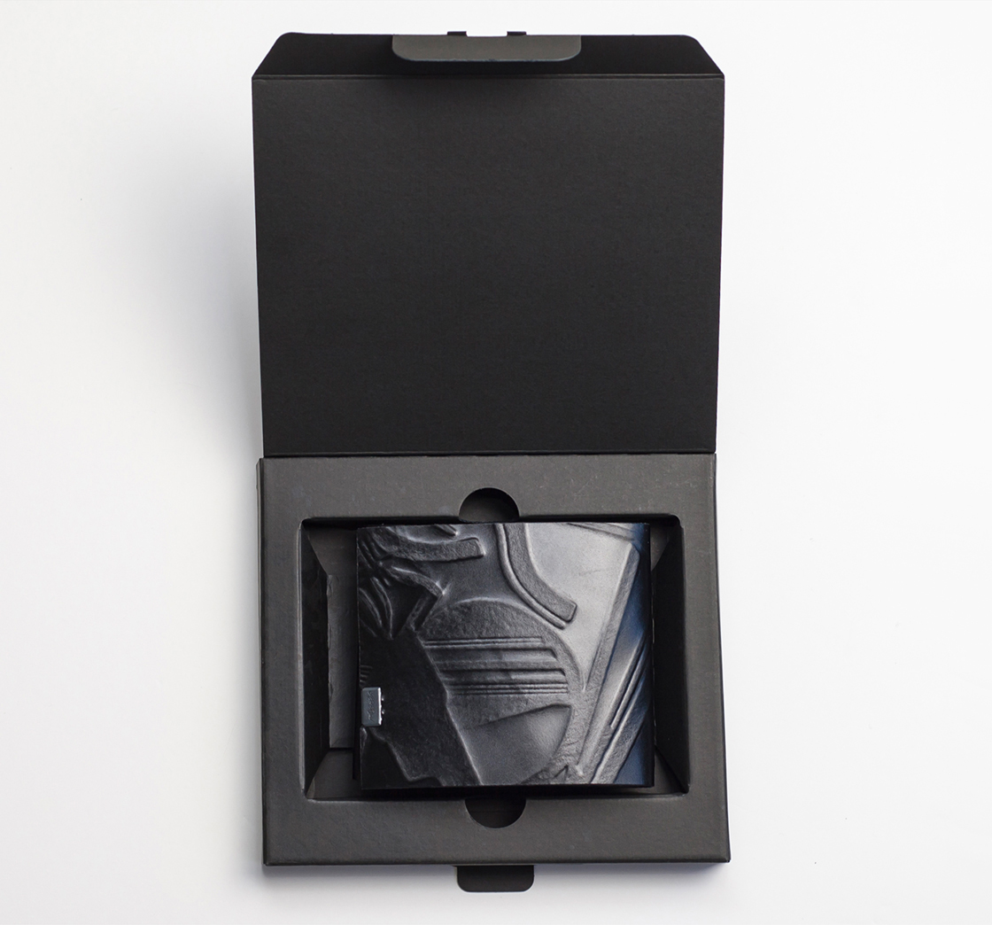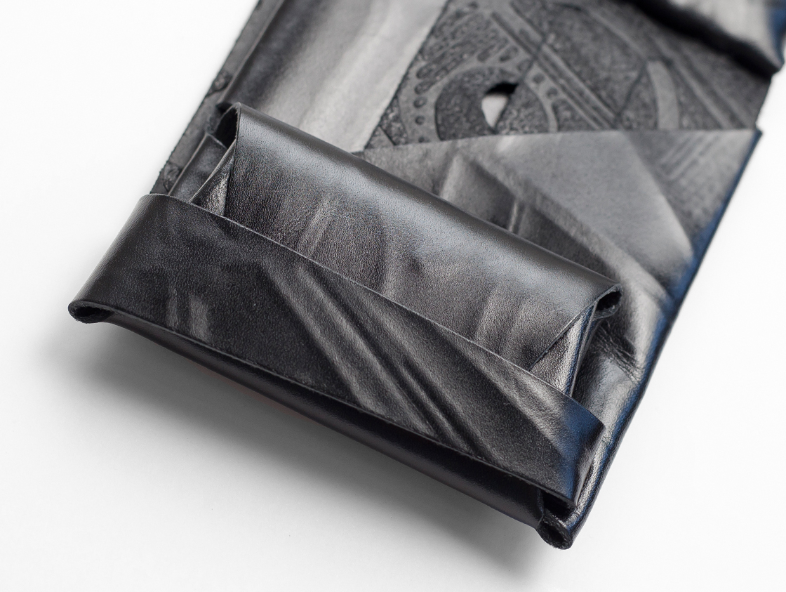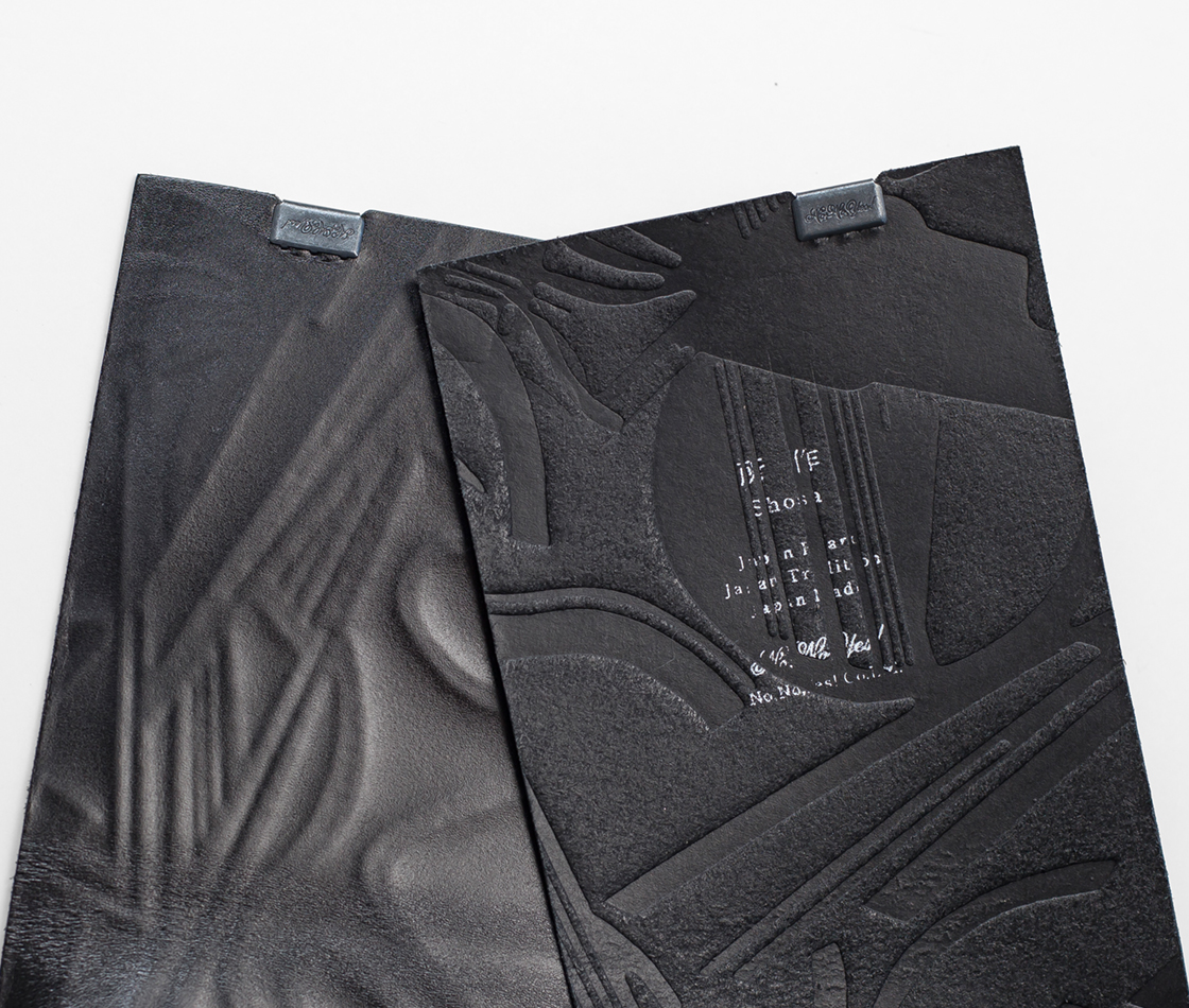 結婚式でお祝いを包む袱紗をモチーフに、折形の重なりをデザインへ落とし込んだシリーズより、 黒地に現代アートを思わせる抽象的な柄をデボス加工で施し、凹凸による立体感と手触りの楽しさを備えた三つ折り財布「ショートウォレット2.0 TARO」をご紹介。 閉じているときも開いたときも表情が変わり、有機的な線や丸い部分は指で触れたくなる魅力があります。 素材は姫路産ステアハイドを使用。 植物由来の成分で丁寧に仕上げ、革本来の風合いを活かしています。 縫製やボタンを用いず、唯一固定する部分にはハードロックナットを採用。シンプルで無駄のない美しい構造です。 大きく開く札入れ、6枚収納可能なカードポケット、取り出しやすいマチ付きコインポケットを搭載。 専用ケース入りでギフトにも最適な一点です。
