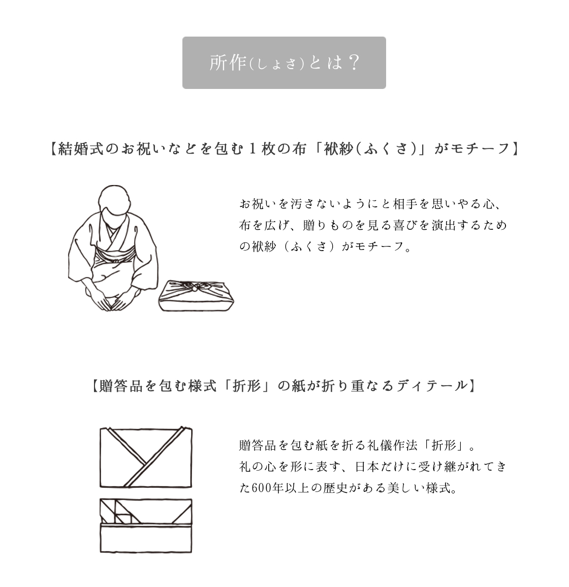 結婚式でお祝いを包む袱紗をモチーフに、折形の重なりをデザインへ落とし込んだシリーズより、