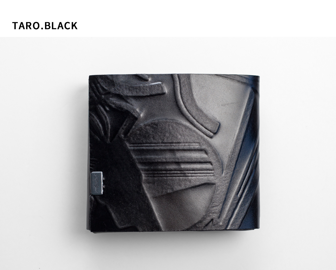 黒地に現代アートを思わせる抽象的な柄をデボス加工で施し、凹凸による立体感と手触りの楽しさを備えた三つ折り財布「ショートウォレット2.0 TARO」をご紹介。