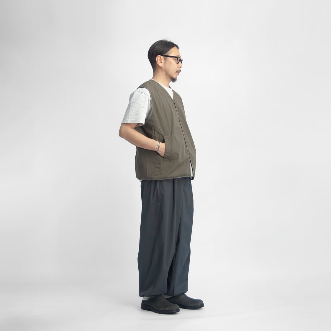 ワイドなワタリから裾にかけてカーブを描くシルエット。