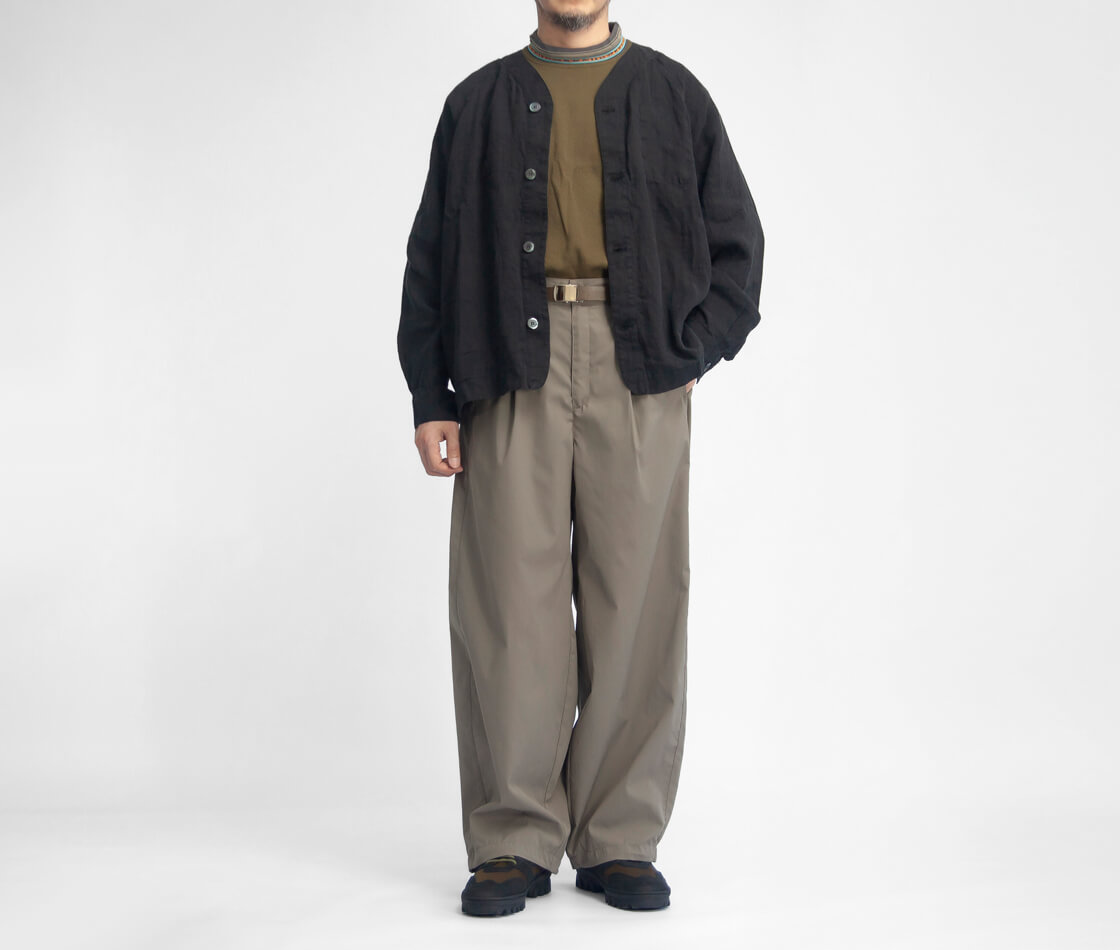 LAOTOURからドライで吸水速乾性に優れた素材で真夏でも軽やかに穿ける超軽量なカーブドイージーパンツをご紹介。 前開きファスナーやベルトループを備え、深めのワンタックやセミイージー仕様で動きやすさを確保。 ワイドなワタリから裾にかけてカーブを描くシルエット。 裾のドローコードで丸みのあるバルーンシルエットにも変化し、抜け感のあるバランスに仕上がります。 素材は軽量でドライなポリエステル100%。 水分を素早く拡散し乾かすことで、蒸れやベタつきを抑えた快適な着用感。 真夏でもストレスなく穿ける、機能性と存在感を備えた一本。