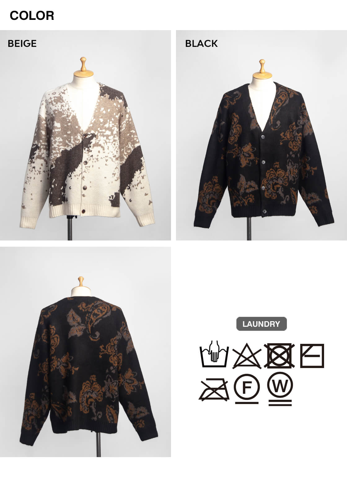 | 製品名 | LAOTOUR ダブルジャカード 総柄 ニットカーディガン 花柄 メンズ |
