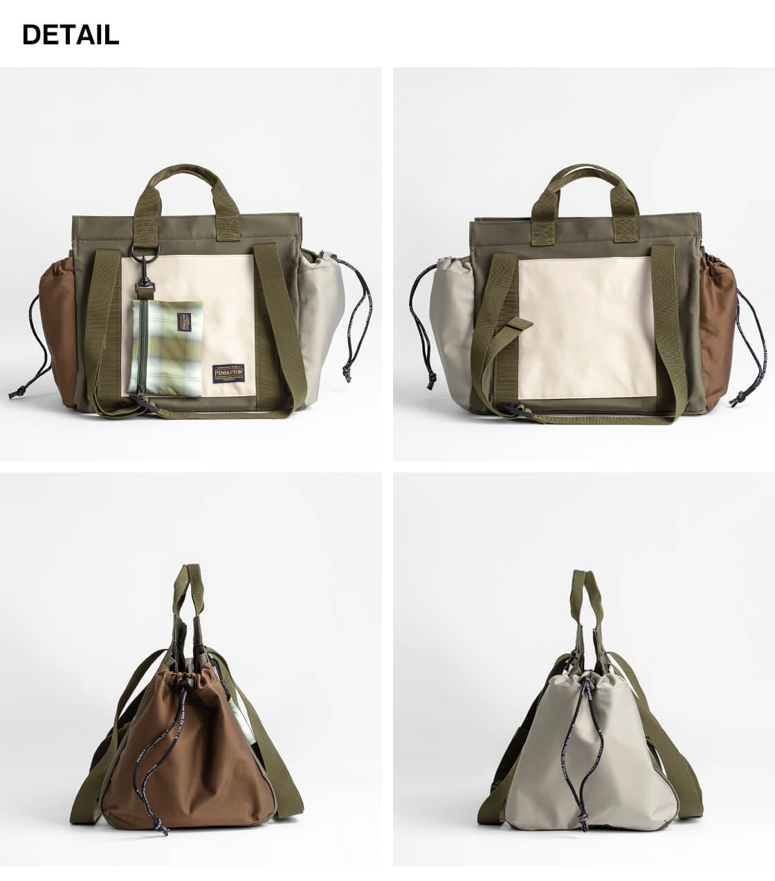 PENDLETONから機能性とデザイン性を兼ね備えた大容量マザーズトートバッグをご紹介。 合計6つのポケットに加え、エコバッグやポーチ、着脱可能なキーフックを備えた充実の仕様。 サイドポケットはドローコード付きで、ボトル類の収納にも対応した実用的な作りです。 トートとショルダーの2WAY仕様。 素材はコットンにポリウレタンを混紡したサテン生地。 ハリのある質感とほのかな光沢を併せ持ち、型崩れしにくい扱いやすさも魅力です。 日常から外出まで幅広く活躍する、性別を問わず使いやすいデザインの一品です。