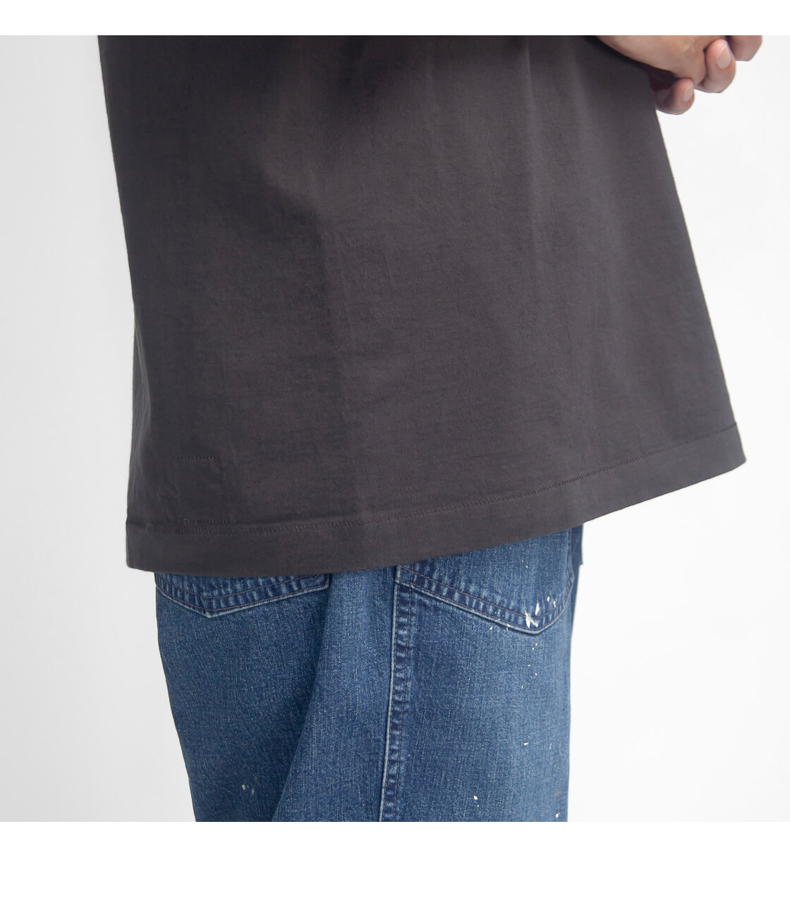脇に縫い目のないチューブ編み(丸胴)で仕上げられたコチラのTシャツは、ボックス型の幅広な身頃、アームホールで全体的にゆったりとしたサイズ感。