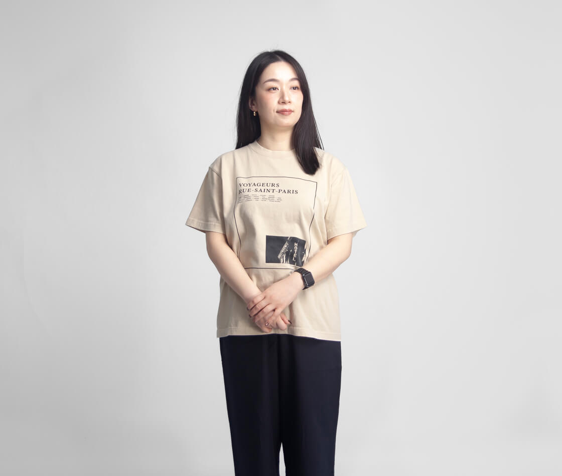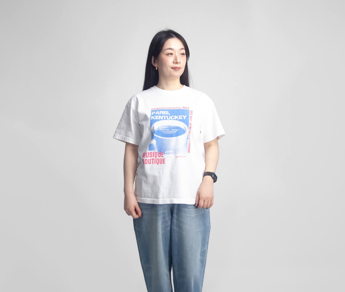 TRICOMERからヴィンテージな風合いとフレンチな空気感を纏うプリントTシャツをご紹介。 架空の旅雑誌やショップ、音楽レーベルをテーマにしたグラフィックが大人っぽい。 ヴィンテージウォッシュ加工により、長年着込んだような色ムラと風合いがこなれた印象。 身幅は広すぎず狭すぎず、やや長めの着丈ですっきりとした女性らしいシルエットに。 袖丈は二の腕を自然にカバーしてくれるのも。 素材にはコットン100%の天竺生地を使用。 フロスト加工による柔らかな風合いと、程よい厚みで透けにくく一枚でも着やすい仕上がり。 日常に自然と馴染み、着るほどに愛着が増す一着です。