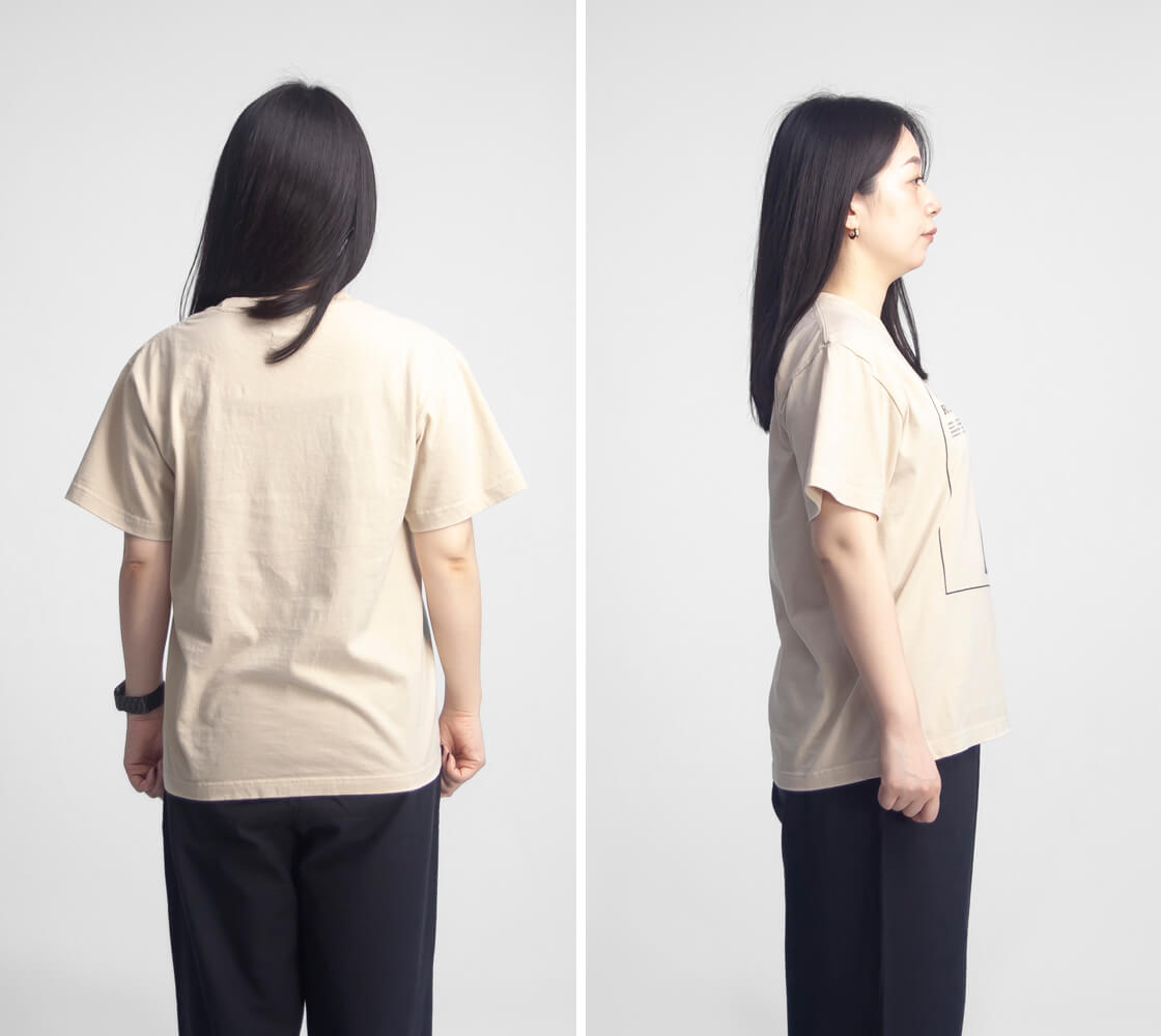 FREE / 着丈63 / 身幅51 / 肩幅45 / 袖丈19 モデル着用 155cmでFREEサイズ 素材 綿100% カラー展開 グレー、ベージュ、ブラック、ホワイト 生産国 中国 モデル着用コメント 身幅は体のラインを拾い過ぎない、ゆったりとしたシルエットで安心感のある着心地でした。袖丈もちょうどよく、折り返してもそのままでもバランスよく着用できました。着丈はやや長めで、お尻が半分ほど隠れるくらい。タックインもしやすく、着こなしの幅が広がりそうだと感じました。首元も開きすぎていないため、古着みたいな雰囲気がありつつも、きれいめな印象で着られると思います。 |