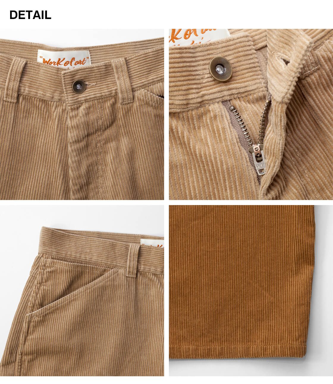 柔らかくくったりとした8ウェールの太畝コーデュロイを使用し、自然な落ち感と快適な履き心地を実現しています。