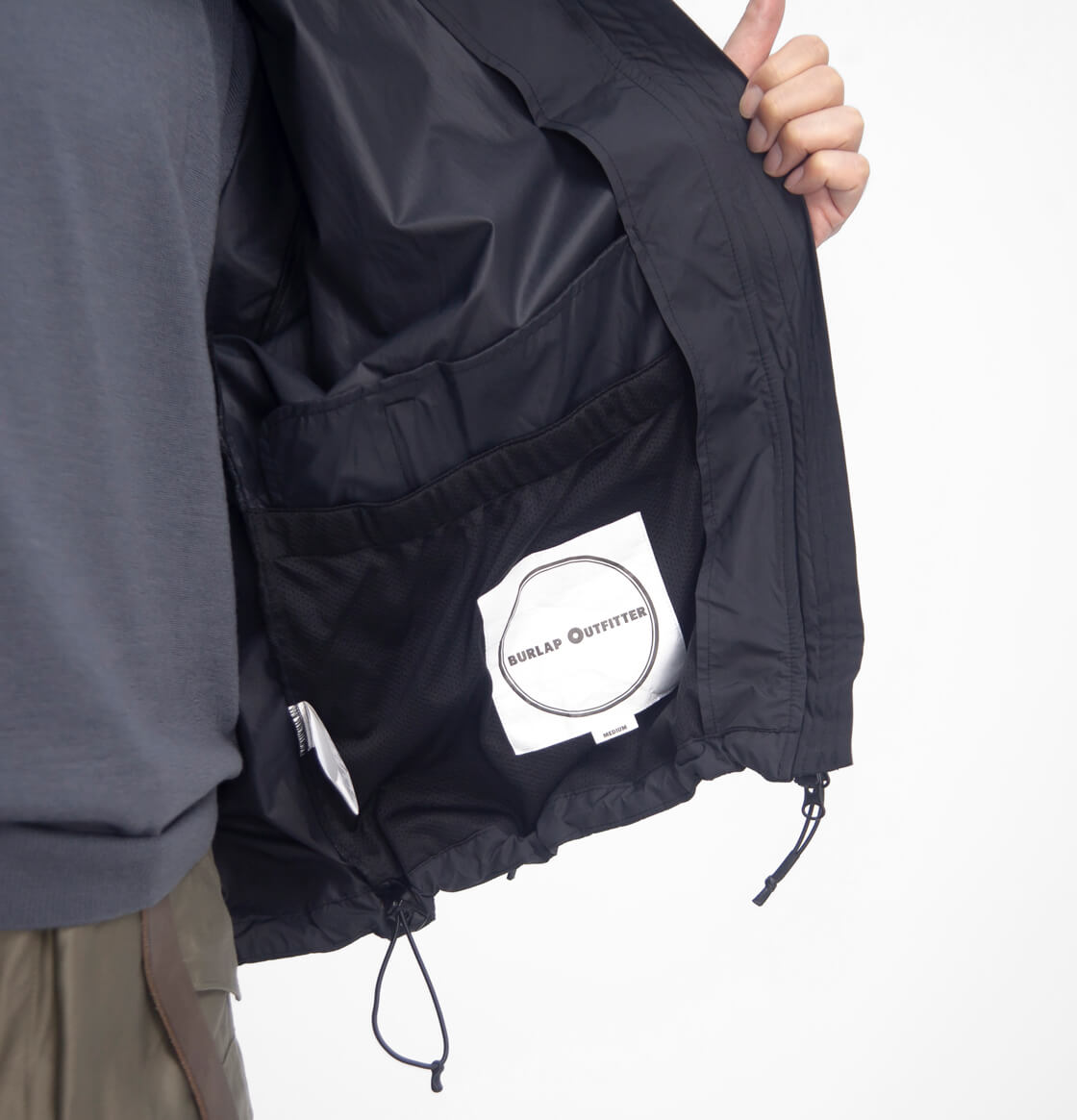 ![]() BURLAP OUTFITTER - NO LOFT JACKET EP ![]() ECWCSプリマロフトジャケットの中綿を取り除いたらこうなった。的なデザインの超撥水フード収納シェルジャケット。 ![]() BURLAP OUTFITTER(バーラップアウトフィッター) アウトドア、ミリタリー、アメカジなどに精通したデザイナー達が2016年秋から立ち上げたブランド「BURLAP OUTFITTER(バーラップアウトフィッター)」。ASK THE FABRIC"(生地に訊け)をメインコンセプトに、高機能素材を使用して、デザイン性の高いデイリーウエアを提案しています。軽くて暖かい、雨風に強く蒸れにくい、柔らかく着心地が良い、簡単に洗えてすぐ乾く・・・。実際に着て使ってみればその機能を体感できる、アウトドアやミリタリーのフィールドでも使用される高機能素材のパフォーマンスを是非体感してみて下さい。 ![]() スウェット・ニットの上からも余裕で着られるゆったりサイズに、レインウェアとして持ち運びやすい軽量さ。 米軍が寒冷地でのミッションに対応するために開発した重ね着(レイヤリング)システム「ECWCS」の極寒環境下で着用されることを目的とした、極寒地用アウター「LEVEL7」であるプリマロフトジャケット「GEN III ECWCS LEVEL7 PARKA」。このプリマロフトを取り払って、シェルジャケットとしての着用にリプロダクトしたのが、BURLAPのこちらのスタンドカラージャケット「NO LOFT JACKET EP」。"ノーロフト"というネーミングも洒落ていますが、何よりの魅力はその軽さと高い撥水性。雨天時のレインウェアとしても活躍するし、持ち運びにもそこまで苦にならない重量なのです。デザインに関しては、フードが内蔵されたスタンドカラー・ファスナー開閉の腰位置のポケット、裾を絞れるドローコードや大きな内ポケットなどオリジナルを踏襲したディティール。補強として、肘部分はナイロン生地を2重に使用。フロントは上下開閉のダブルファスナーで着こなしの幅も広がります。ゆったりとした大きめのシルエットは、ニットやスウェットなどの上からの羽織りとしても着用しやすいサイズ感。 ![]() スタンドカラーにフードが収納されていて、雨天時等のシーンや好みで出し入れ可能。 ![]() 通気性・ムレ防止のため背裏にはメッシュ生地を用いています。 ![]() 半永久的な撥水・速乾性を両立し、蒸れにも強い撥水素材EPIC。 超撥水素材「EPIC(エピック)」。撥水に優れたEPIC (エピック)加工が施されたナイロン生地なのですが、その最大の特徴は、繊維1本1本を防水ポリマーで包み込むという独自のテクノロジー。生地の表面だけでなく、内部にまで耐水バリアを形成する"3次元バリア構造"を実現しています。その結果、半永久的な撥水性と速乾性を両立し、なんと100回洗濯しても性能が落ちないという圧倒的な耐久力を誇ります。まさに、レインウエアにうってつけの素材といえるでしょう。しかも、EPICは防水フィルムを貼らない"織物"の構造。だから、軽くてしなやかでムレ知らず。縦糸・横糸の1本1本にまでポリマーを浸透させているため、生地そのものが水を吸わない。水を含まないから重くならず、払うだけで水気が落ち、そのままサッと再び着られる。まさに軽快でドライな快適さです。ただし、誤解してほしくないのは、これは防水素材ではないということ。強い水圧には耐えきれず、スコールなどの豪雨や、バイク走行などには不向きです。防水ではなく、あくまで"耐久撥水"。それでも、気まぐれな天候に対応でき、どの防水素材よりもムレないEPICは、アウトドアにも街にも馴染む最高の相棒になるかと思います。防水ではなく「濡れをいなす」という発想。"雨を楽しむための素材"と言っていいでしょう。 ![]() ![]() 身長170cm、体重62kgの男性がMサイズ着用。