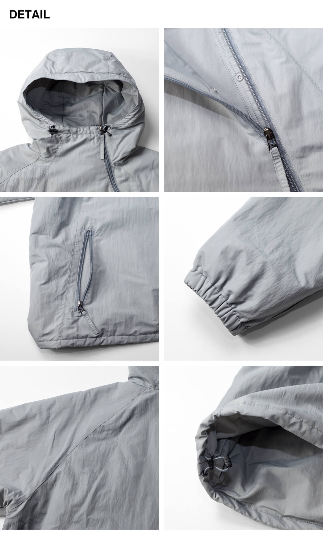 持ち運びに便利な収納袋付きで、デイリーからアウトドアまで幅広く活躍する一着です。
