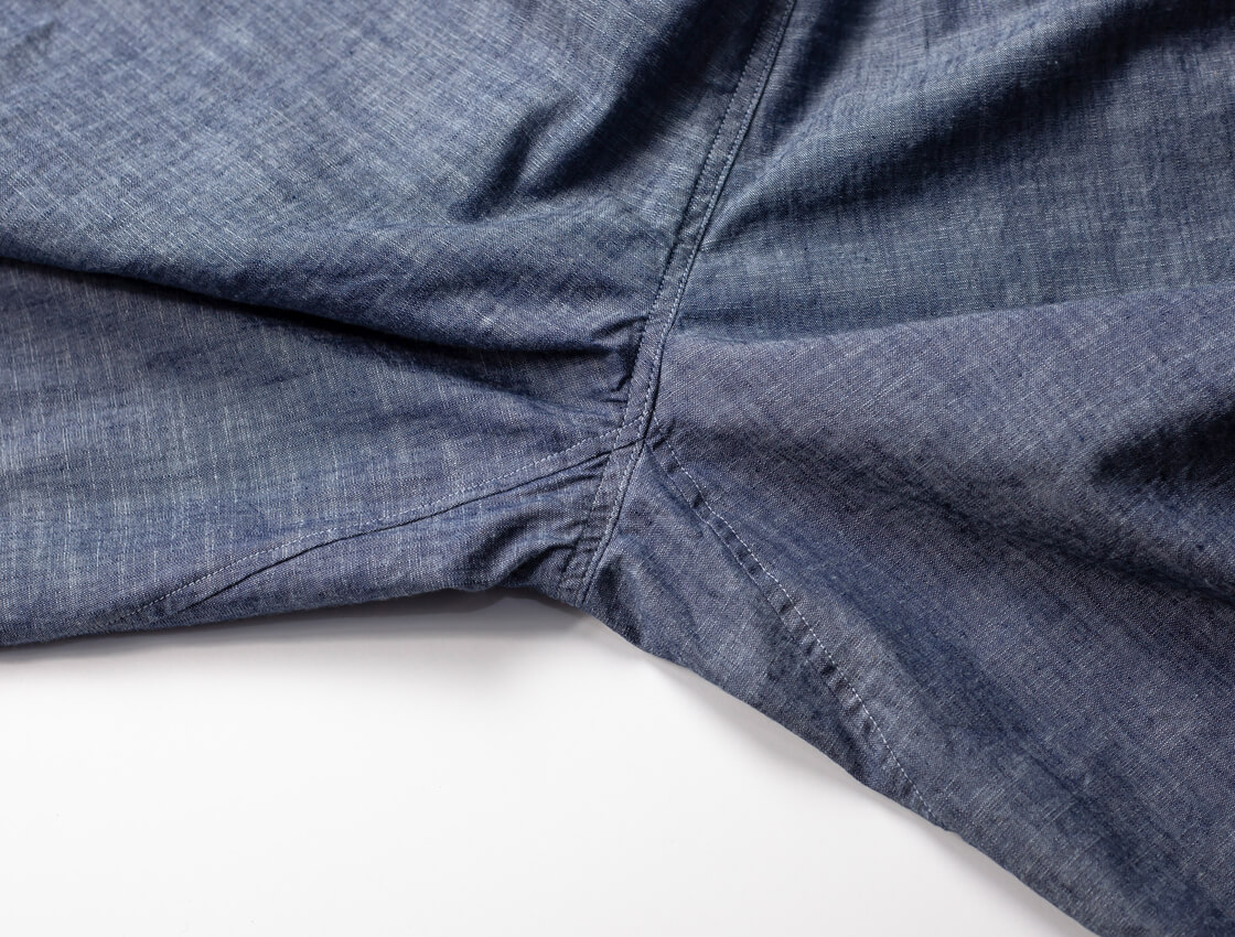 旧式織機ならではの凹凸と経年変化を楽しめるフレンチシャンブレー。