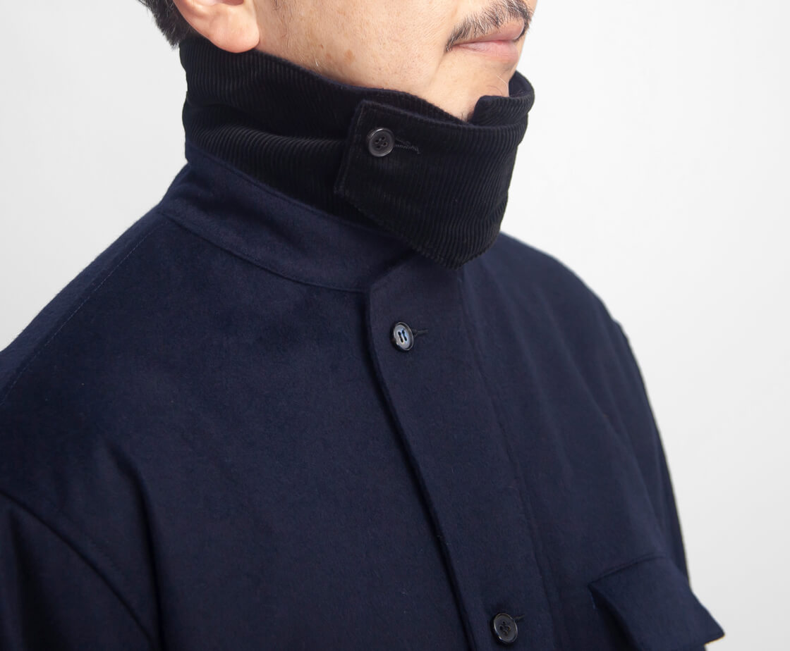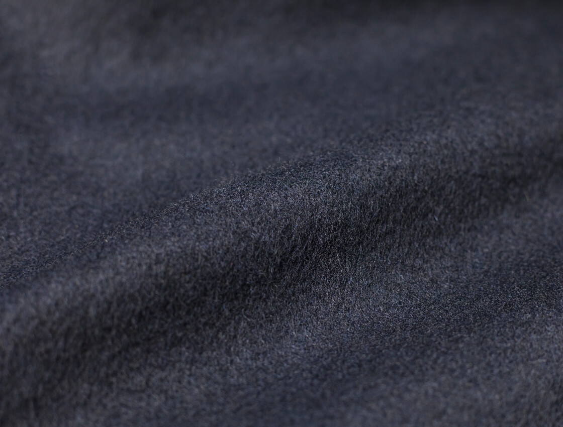 素材はハワード・ハーディ社のデッドストックカシミヤ混フラノで、毛足の長い艶と滑らかさが魅力。