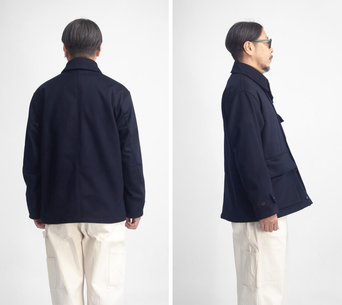 程よくゆとりのあるボックス型で、羽織るとテーラードを感じる自然に馴染む仕上がり。