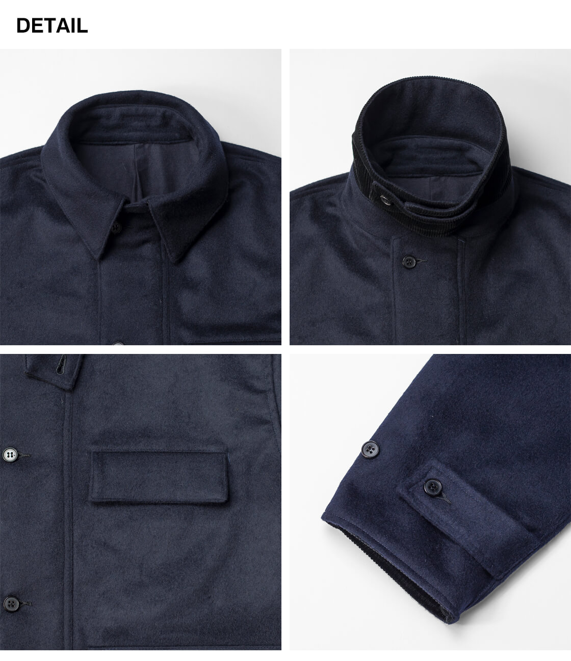 60年代フランス製をオマージュして、大ぶりな襟やフラップポケットを採用しています。
