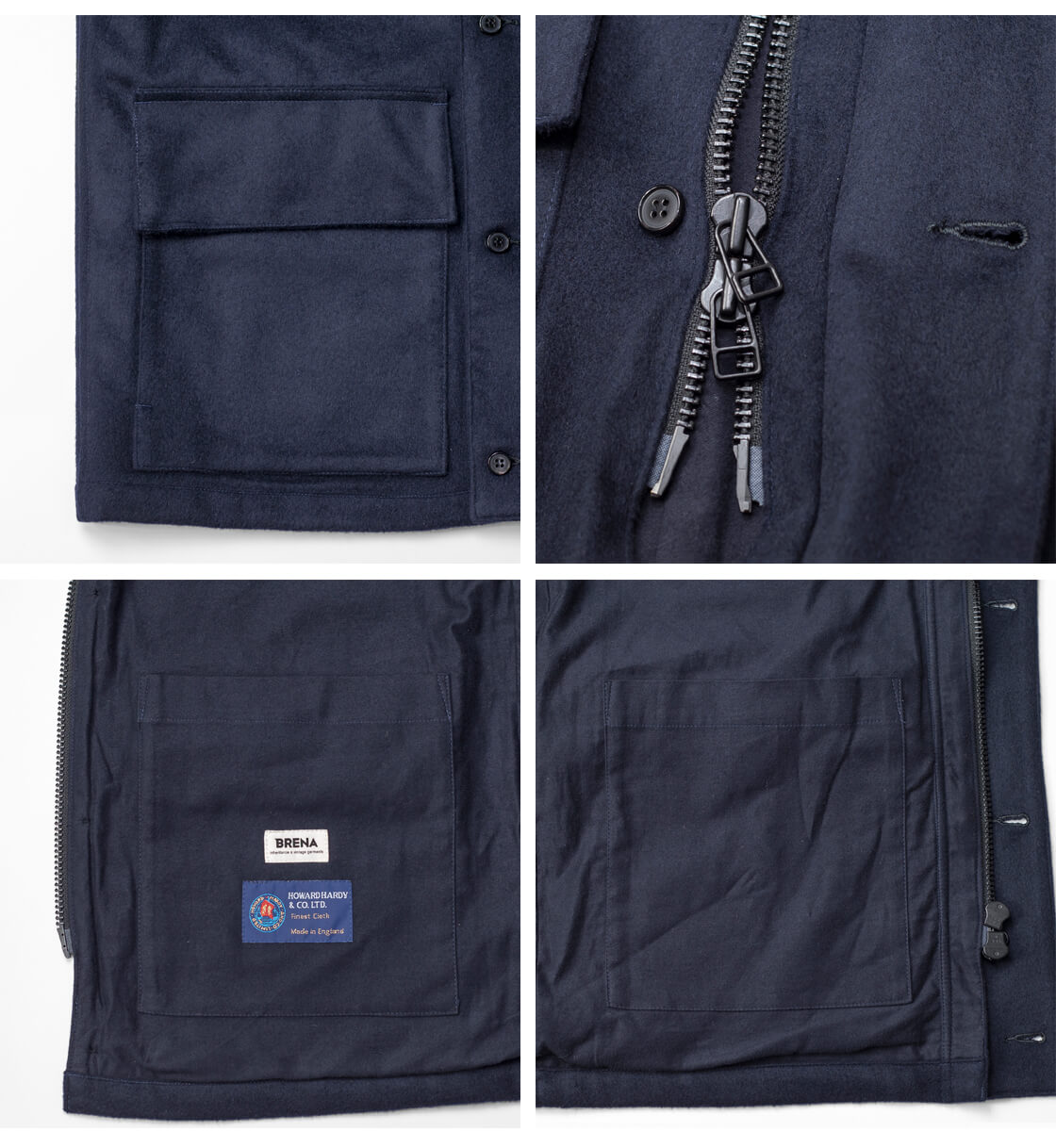 BRENA - GARDI / HOWARD HARDY WOOL CASHMERE VINTAGE FLANNEL![]() デッドストックのカシミヤ糸を用いた高級フラノ生地で製作された、上質なハンティングジャケット。 ![]() BRENA(ブレナ) テーラードを基軸としたカジュアル、ユニセックスで提案する日本のブランド「BRENA (ブレナ)」。ワーク、ミリタリー、ヴィンテージを独自の解釈により再構築し、オーセンティックな製品を提案しています。さらに現在では希少となった、裁断から縫製、仕上げまでの全行程を1人の職人が仕上げる「丸縫い」のジャケットを製作しているなど、レディメイドでありながら、ビスポークにも近いモノ作りをしているという点も大きな特徴。普遍的なアイテムだからこそ真摯に丁寧に、熟練の職人と共に良質なアイテムを提案しています。 ![]() 60年代のハンティングジャケットをオマージュしたクラシックなデザイン。 60年代のテーラードにて製作されたフランスのハンティングジャケットをオマージュした、BRENAのハンティングジャケット「GARDI」。こちらは 1850年創業の英国老舗マーチャント、「ハワード・ハーディ」の70-80年代のカシミアがブレンドされた高級フラノ生地を採用したモデル。大ぶりな襟は、チンストラップ付きで襟を立てることで風防に。その襟裏にはコーデュロイ生地が配されています。左胸にポケットが1つと腰に大き目のポケットが2つ。いずれもフラップ付きで、BDUジャケットを思わせる無骨さもポイント。腰位置のポケットは脇からも手が差し込めるハンドウォームも備えています。袖口裏にも襟裏同様にコーデュロイ生地が配され、手首の冷え、擦れによる生地の消耗を防ぎます。フロントは、上下開閉のダブルファスナーとボタンによる2段留め。着こなしの幅も広がります。身頃の裏地にコットンフランネル生地を採用した暖かさに、袖裏はポリエステルタフタで袖通しも滑らか。ゆったりとしたボックスシルエットながら、BRENA特有の"テーラードの流れ"が活きており、腕を通した瞬間に自然と馴染む着心地はさすがの完成度。現代のスタイル感も絶妙に反映しています。 ![]() 身頃裏地は暖かさのあるコットンフランネル生地、袖裏は滑りの良いポリエステルタフタ。 ![]() デッドストックのカシミヤ糸をブレンドした、毛足長めで艶のあるしっとり滑らかな高級フラノ生地。 1850年創業の英国を代表するマーチャント、HOWARD HARDY(ハワード・ハーディ)社の、70~80年代のカシミアがブレンドされた高級フラノ生地。ハワード・ハーディはロンドンに拠点を置く老舗ファブリックメーカーで、英国スタイル、品質、優雅さへの伝統的なこだわりをもった名門メーカーです。カシミアがブレンドされたこのウールフラノは、ウールならではのハリ感とカシミアならではのしっとり滑らかなタッチを備えた上質な素材です。長めの毛足で、起毛した表面は艶があって、とっても上品な表情を生み出します。 ![]() ![]() 身長170cm、体重62kgの男性が44サイズ着用。