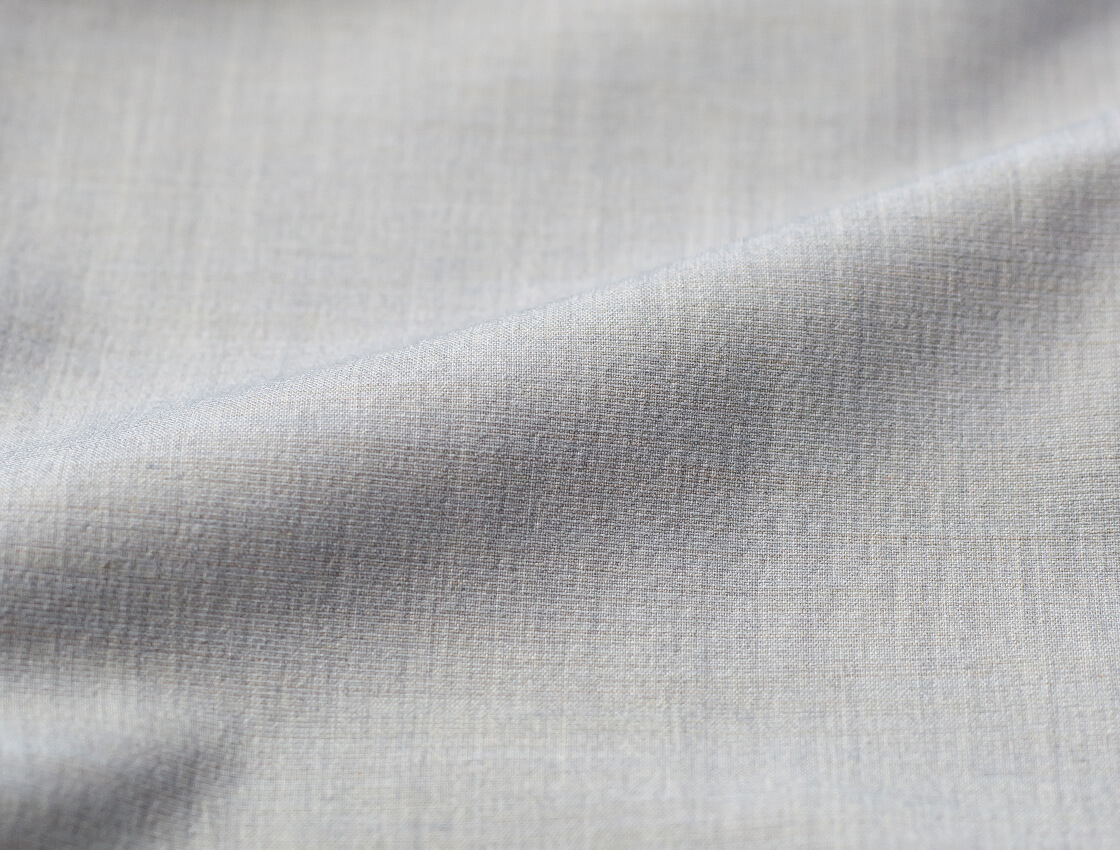 本体に用いているのは、ポリエステル・レーヨン・リネン・ポリウレタン混紡の平織トロピカル生地。トロピカルと言えば「熱帯地方」の意味で、マレーシアやインドなどに輸出されたことからついた酷暑用のウール素材。こちらのトロピカルは、ウールではなくてポリエステルで作られています。まるでトロピカルウールの様な天然素材見えするナチュラルな風合いを表現していて、接触冷感が感じられる涼やかさを実現しています。ウールや麻だと天然繊維なので吸湿速乾に優れているもののシワになりやすく、気を付けないと縮みや歪みが出やすい素材です。ですが、こちらの素材はポリエステルメインのため、シワになりにくく家庭での洗濯もできるイージーケアを実現しています。さらにUVカット効果、身体の動きを遮らないストレッチ性も付与。程よい厚みとハリはありますが、肌離れの良さと速乾性で春夏の素材として最適な生地です。