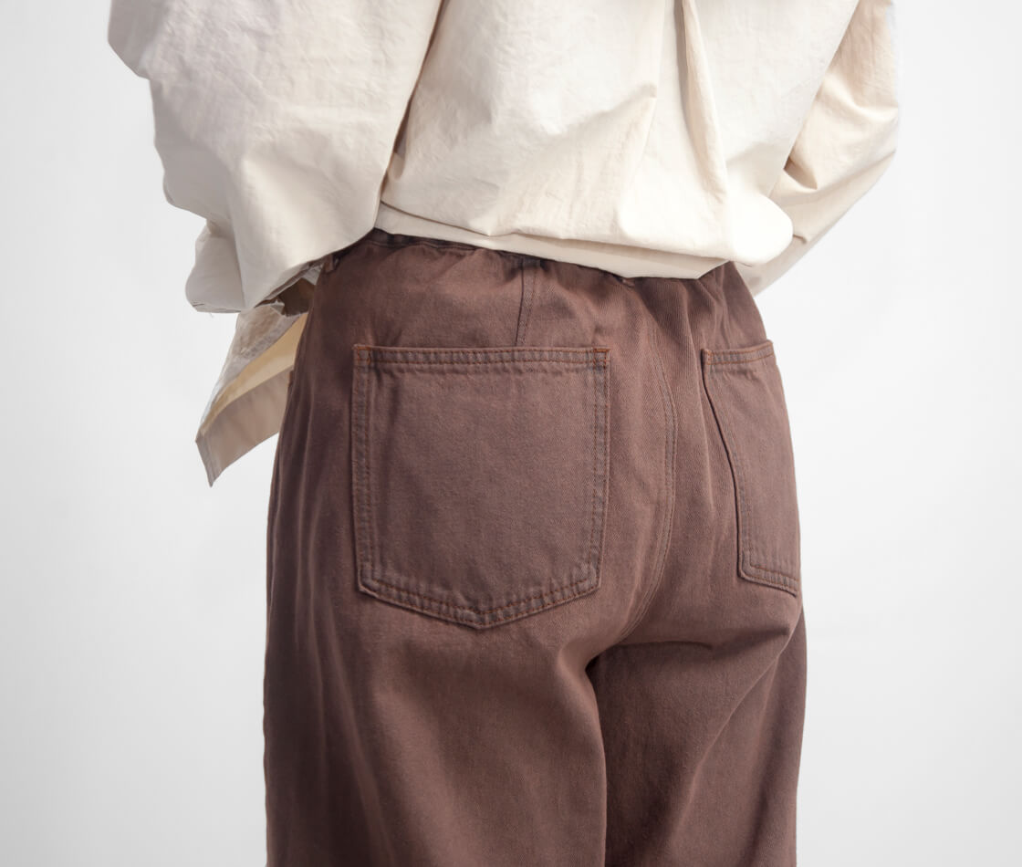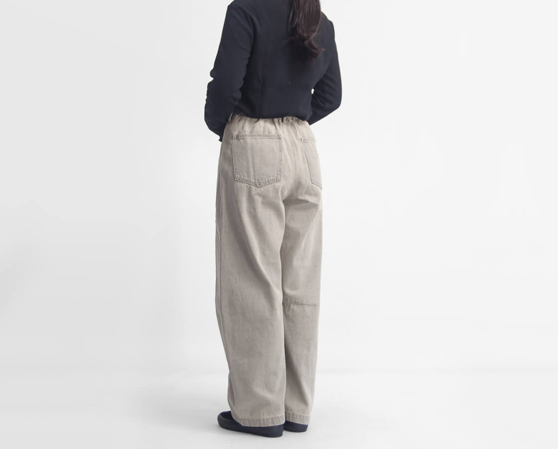 オリジナルカラーのデニム生地と、計算された立体シルエットが魅力の1本。ブリーチ加工を施したデニム地に、ブランドオリジナルのカラーを丁寧に染め上げた、他にはない表情を持つカラーデニムパンツです。落ち着いたトーンと、やや褪せたような風合いが、カジュアルながらもどこか大人の余裕を感じさせる仕上がりに。 シンプルなTシャツやシャツと合わせるだけで、自然とこなれ感が漂い、いつものスタイルを格上げしてくれます。カラーデニムですが派手な印象はなく、上品な発色と柔らかな存在感が、デイリーコーデにもぴったり。かっちりしすぎず、だけどラフすぎない、そんな絶妙なバランスを楽しめるアイテムです。
