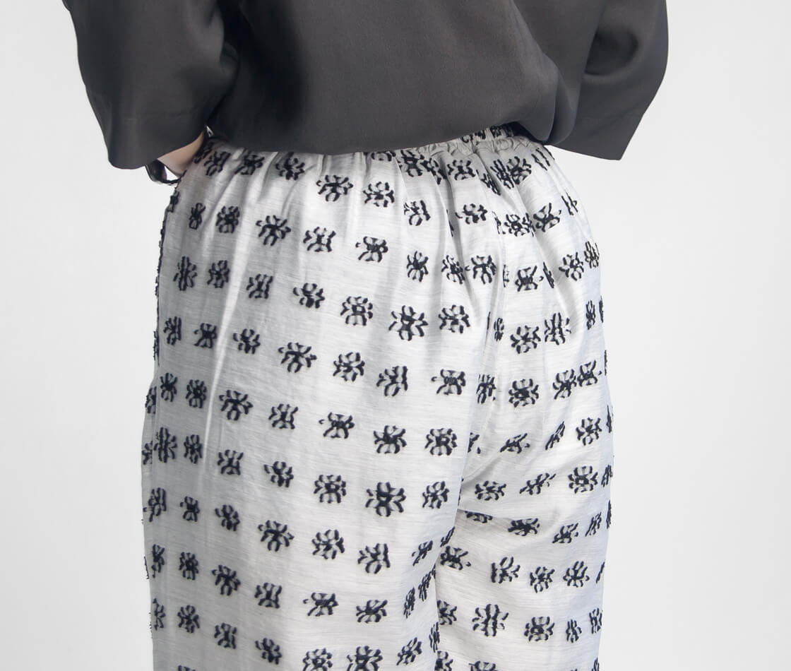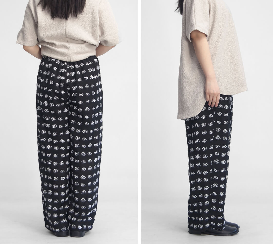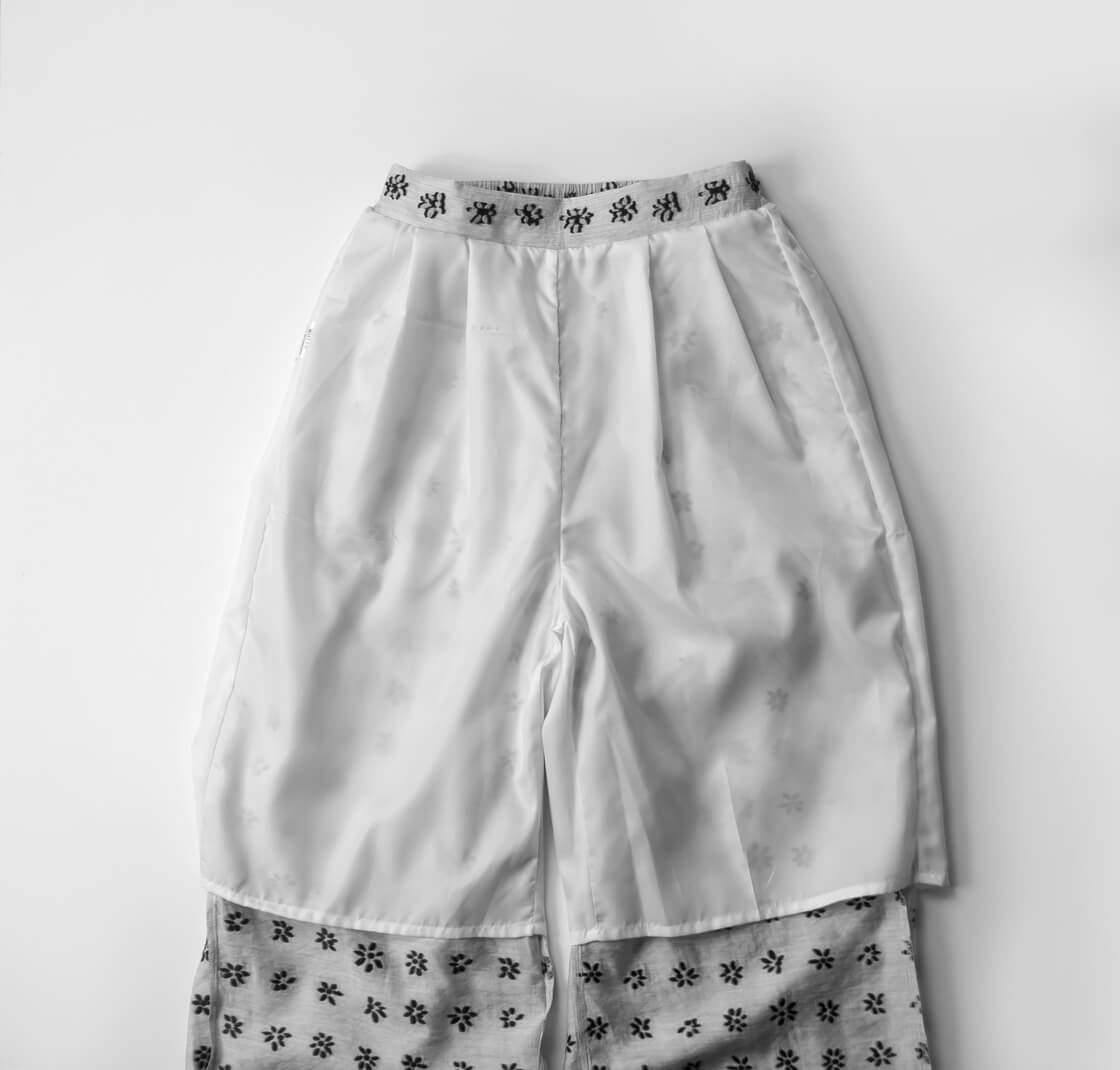 上品な存在感を放つジャカードワイドパンツ。