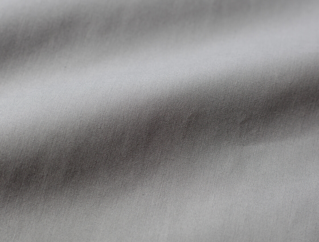 本体に用いているのは、コットンの自然な風合いに、ポリエステルの軽さと耐久性をプラスした綿ポリエステルのブロード生地。ブロード織りによる、きめ細かくフラットな表情で上品な印象に加え、薄手で、肌離れがよくサラッとした着心地が特徴です。さらに綿100%の生地よりも、シワになりにくくて、洗濯後も乾きやすくて扱いやすいイージーケアというのも嬉しい。
