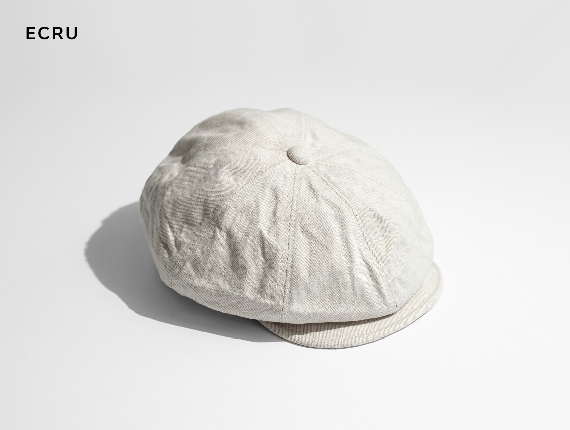 岡山県井原産デニムを用いた、シャープなムラ感が特徴のデニムキャスケット。重心を変えることでアレンジ可能なゆったりとした被り心地。サイズの微調整、着用時も綺麗なシルエットで被りやすさも抜群。