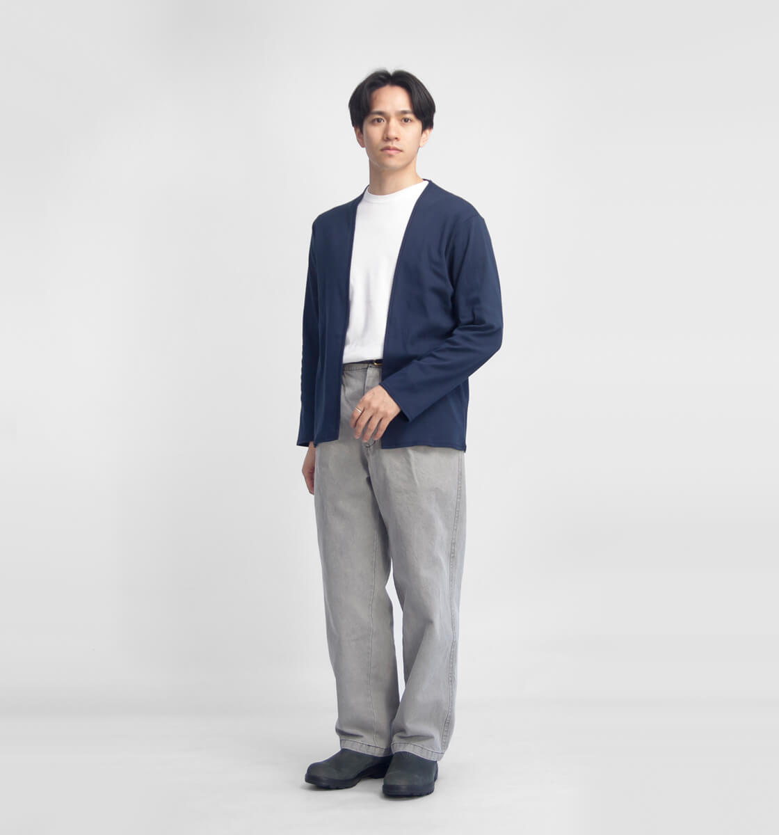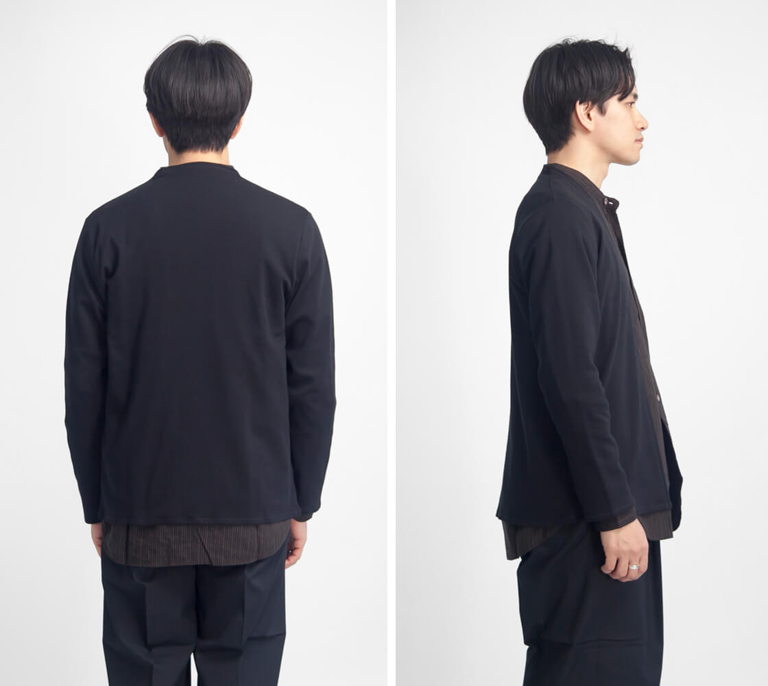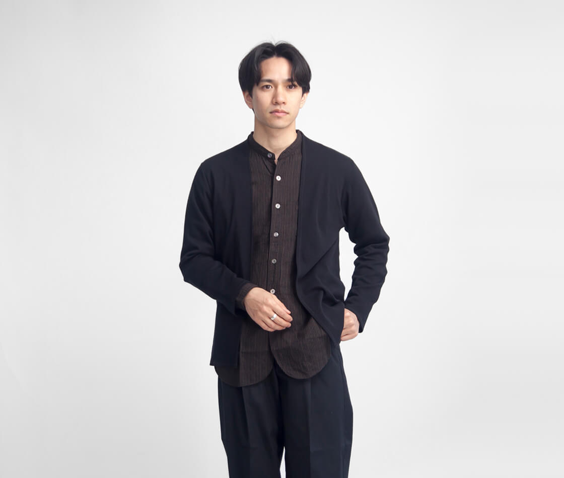 上質なフライス生地で体を包むような着心地。さっと羽織れる、薄手でしなやかなカーディガン。