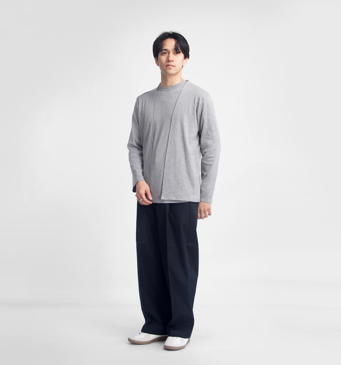 ボタンレスでミニマルに。体に寄り添うシルエット。