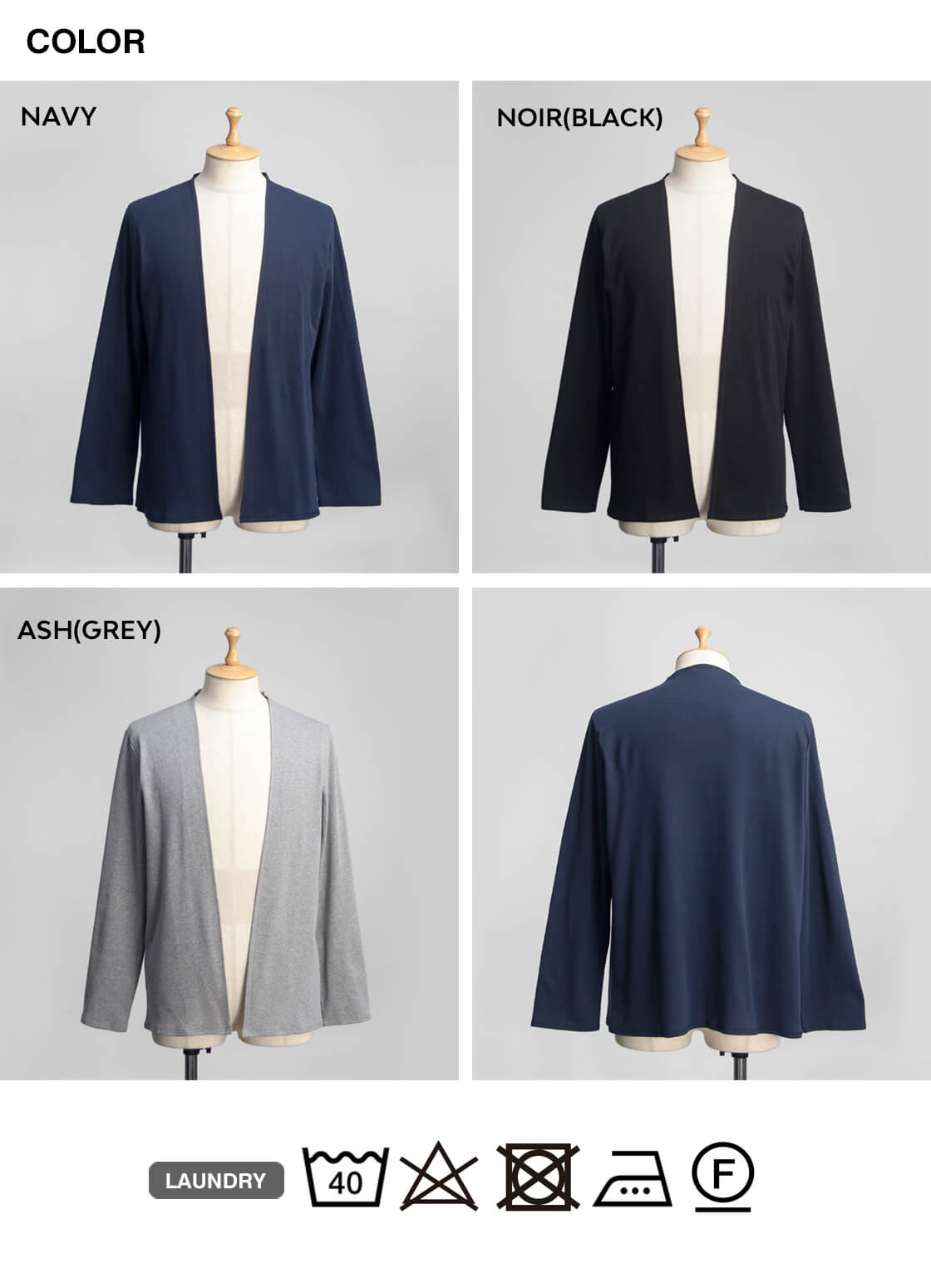 アッシュ(グレー)、ネイビー、ノワール(ブラック)