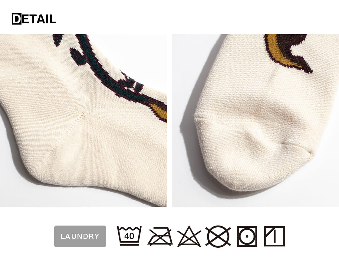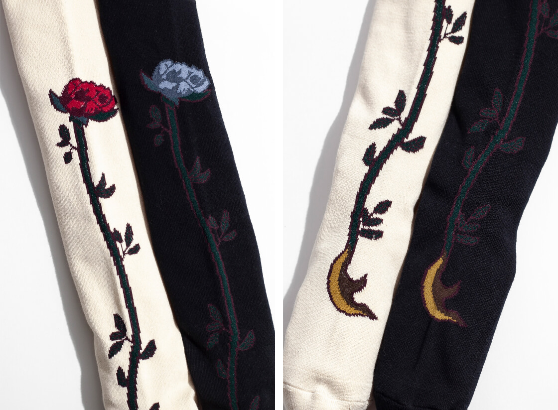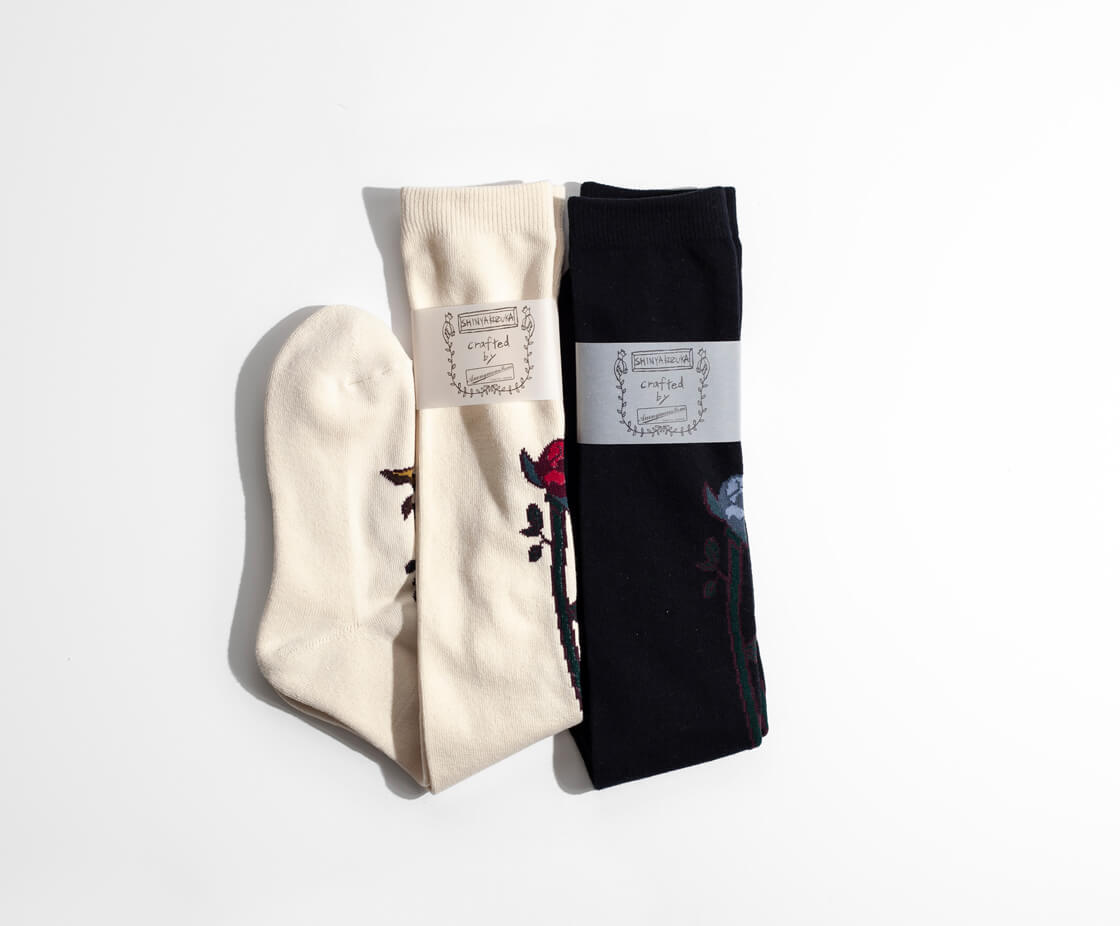 そんな2ブランドのコラボレーションソックスは決して安いものではありませんが、独特の世界観に品質が重視された日本製ならではの靴下に仕上げられています。