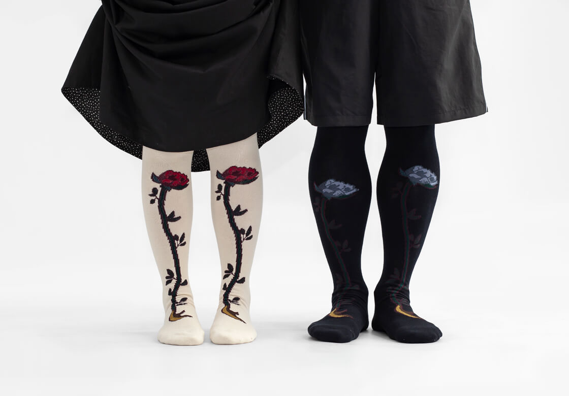 デザイナーが、母の日のプレゼントに贈った布の花を着想源としたSHINYA KOZUKAとAnonymousIsmのコラボレーションソックス。