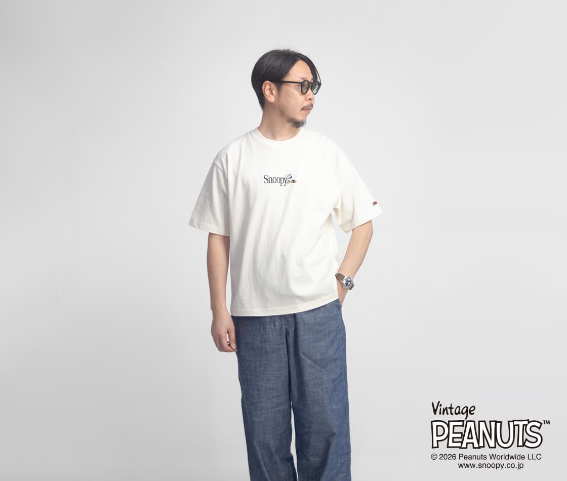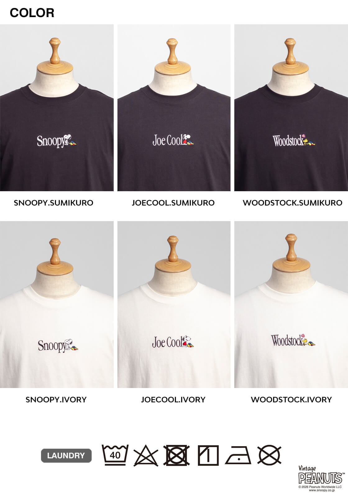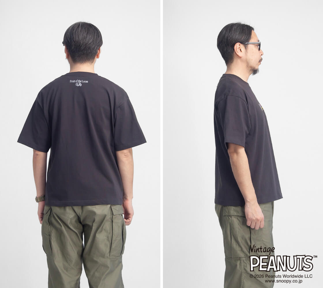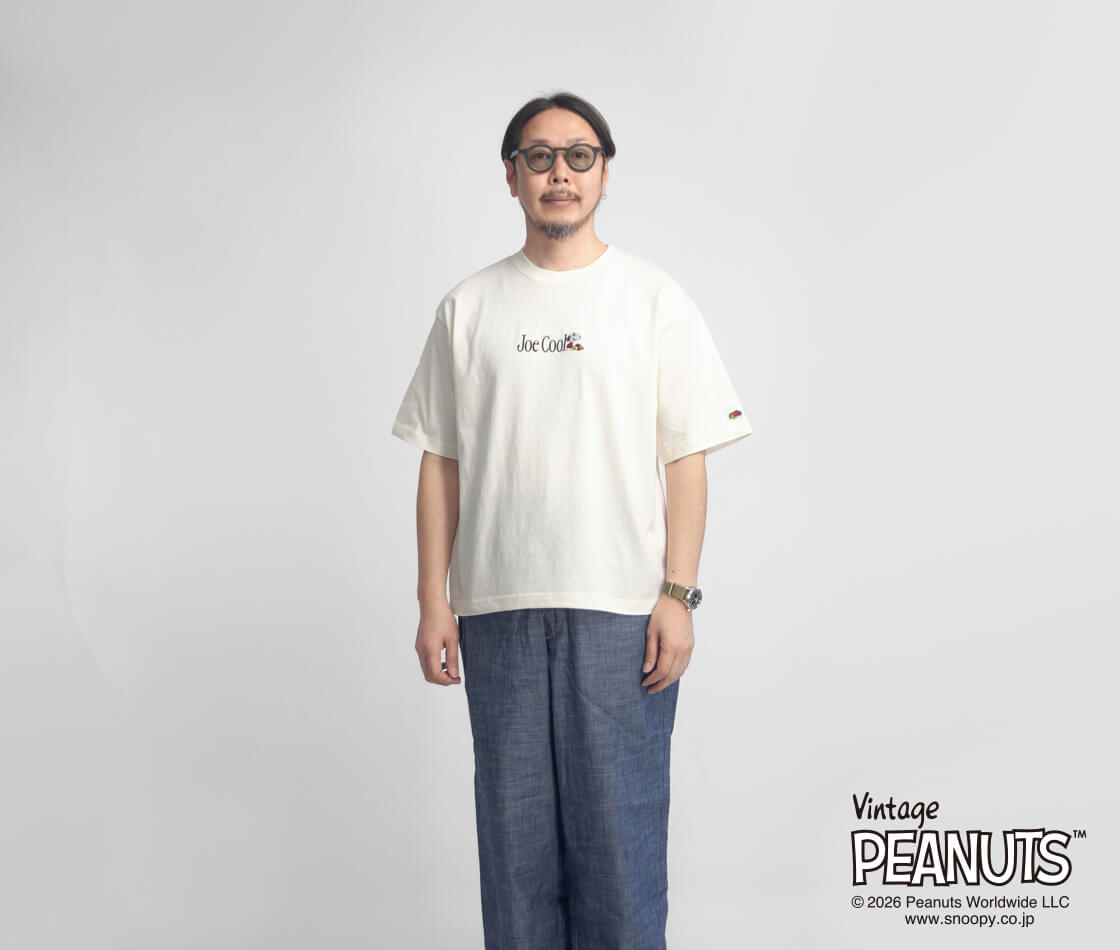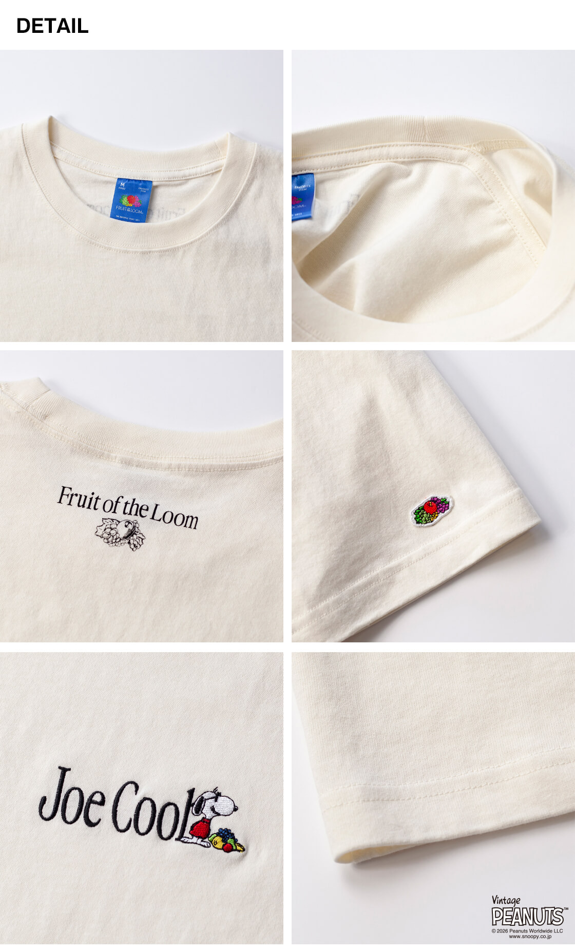 世界中で長く愛され続ける「Peanuts」。この「Peanuts」の70年代のヴィンテージなアートワークを刺繍に落とし込んだ、Fruit of the Loom(フルーツオブザルーム)とPEANUTS(ピーナッツ)コラボTシャツ。定番でありながら色褪せない存在感を放つ、「SNOOPY(スヌーピー)」。そのスヌーピーが空想の中で大学生になりきってクールに振る舞う「JOE COOL(ジョー・クール)」。そしてスヌーピーの親友である「WOODSTOCK(ウッドストック)」が胸部分にそれぞれデザインされています。Peanutsファンはもちろんですが、雰囲気のあるTシャツを探している方にも、ぜひお試しいただきたい一着です。
