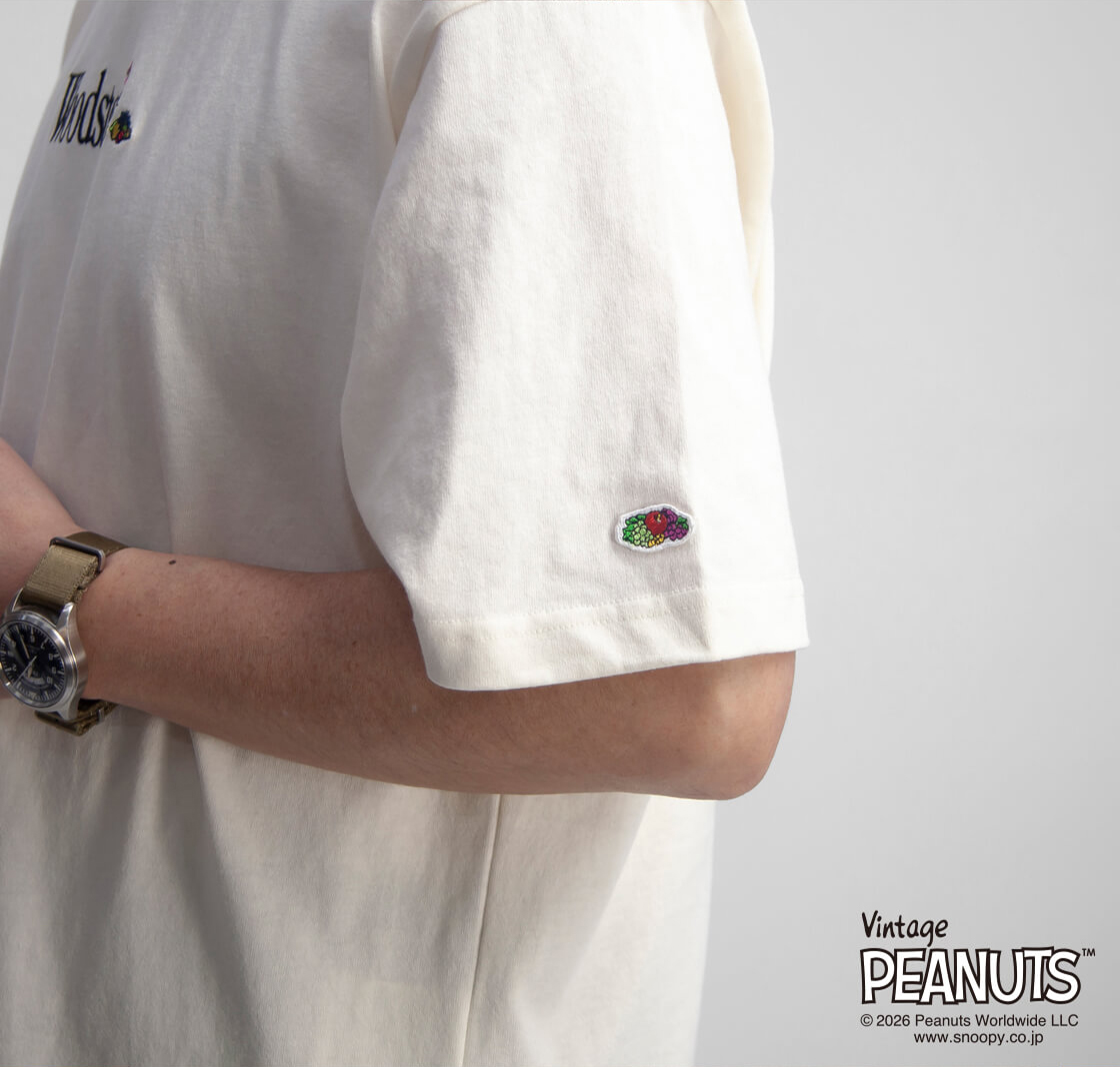 70年代「Peanuts」のヴィンテージなアートを刺繍に落とし込んだ、Fruit of the LoomとPEANUTSコラボTシャツ。